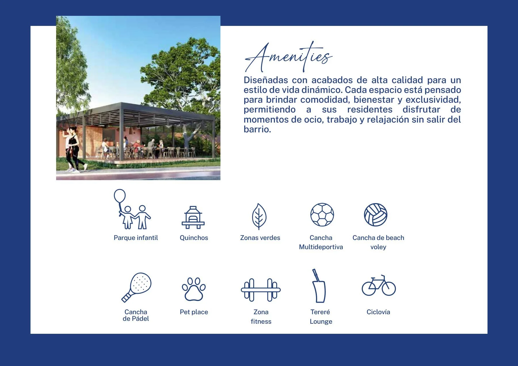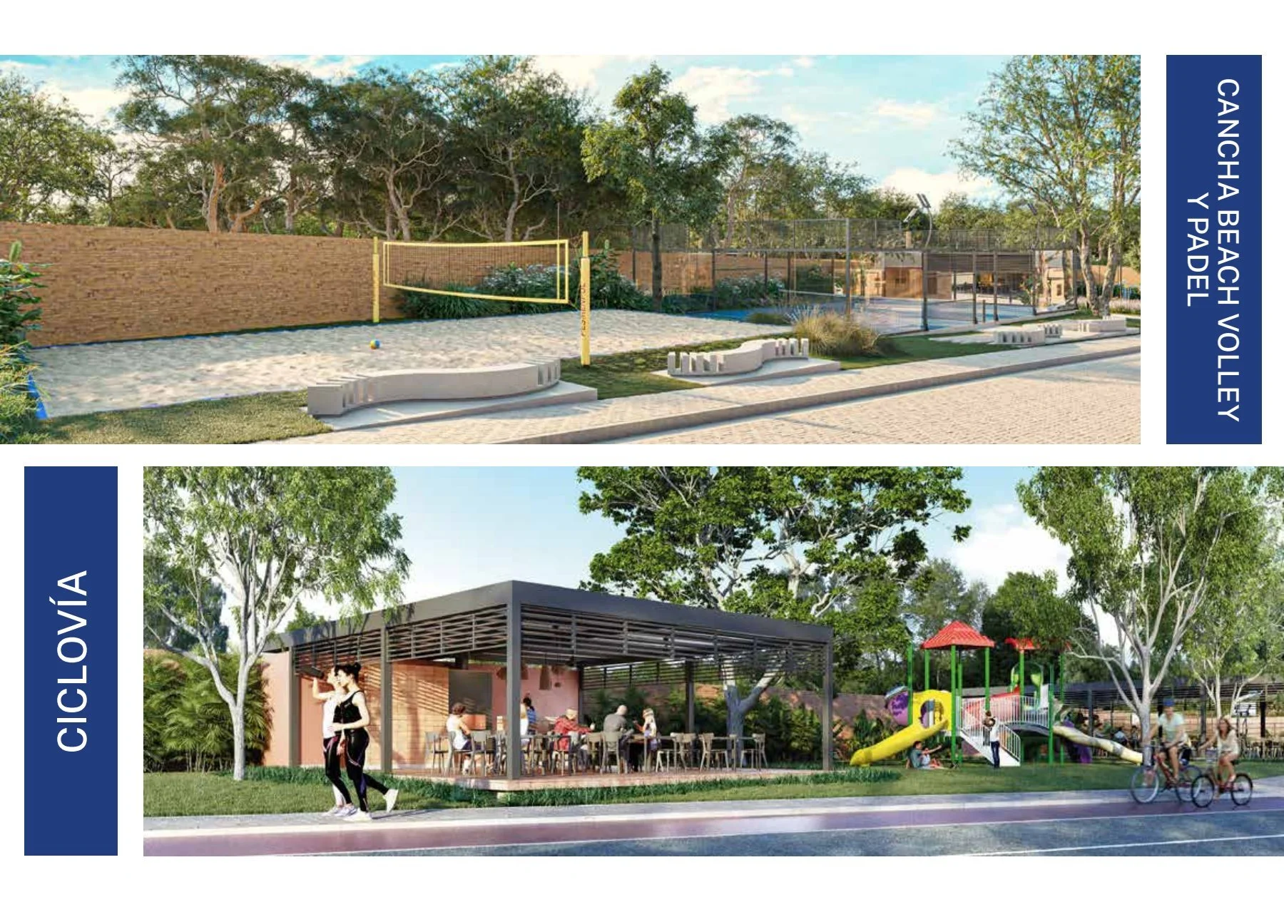 Barrio con pádel, multiuso, vóley playa, 4 quinchos, parque infantil, ciclovía y más.