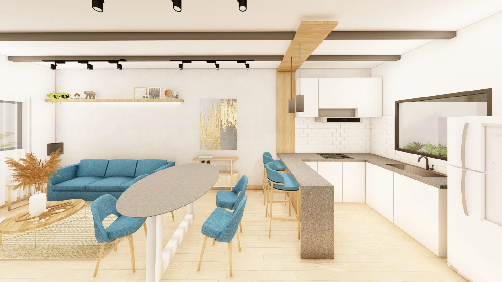 * Sala, comedor y cocina integrados