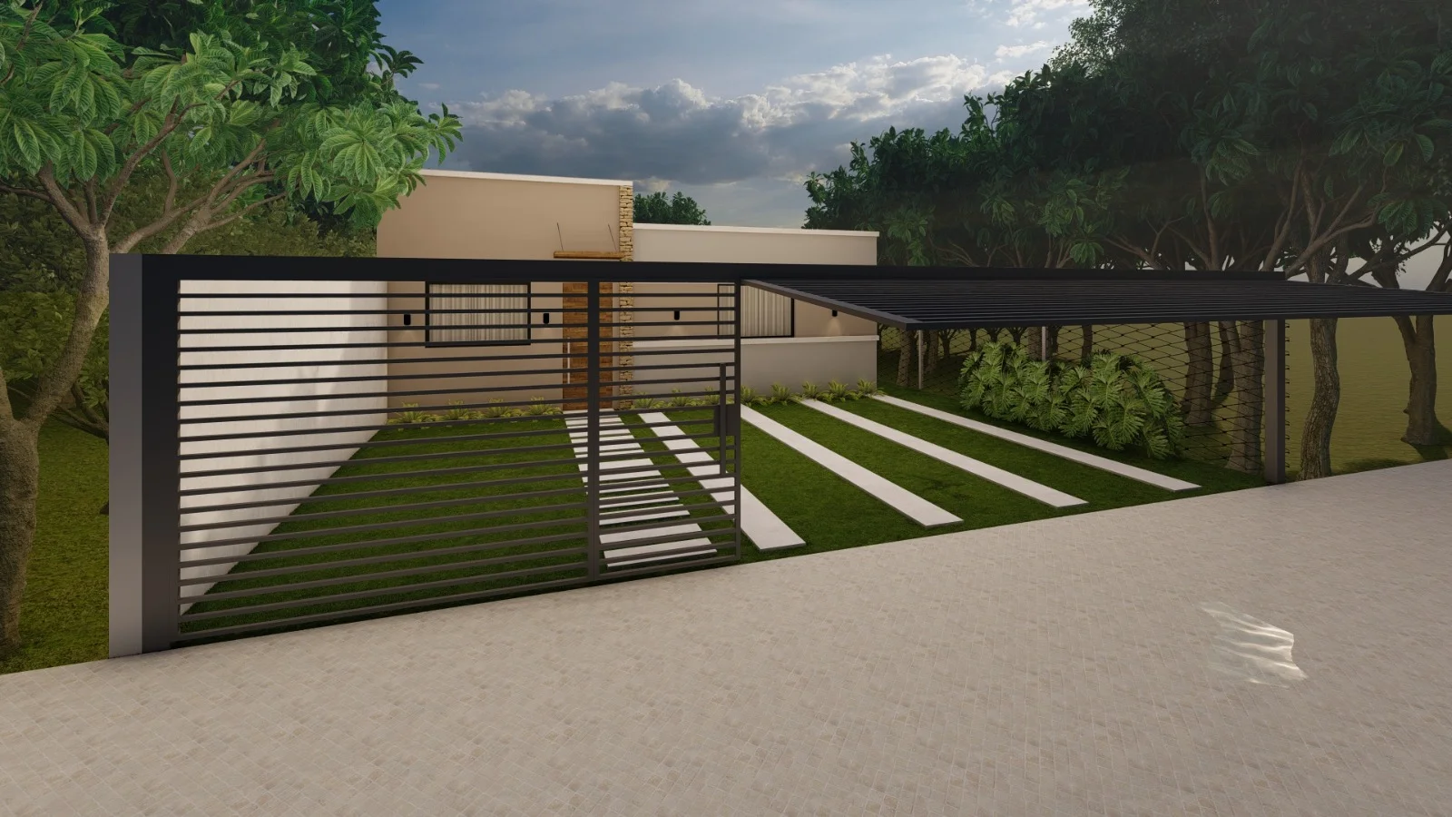 * Moderna fachada y portón basculante