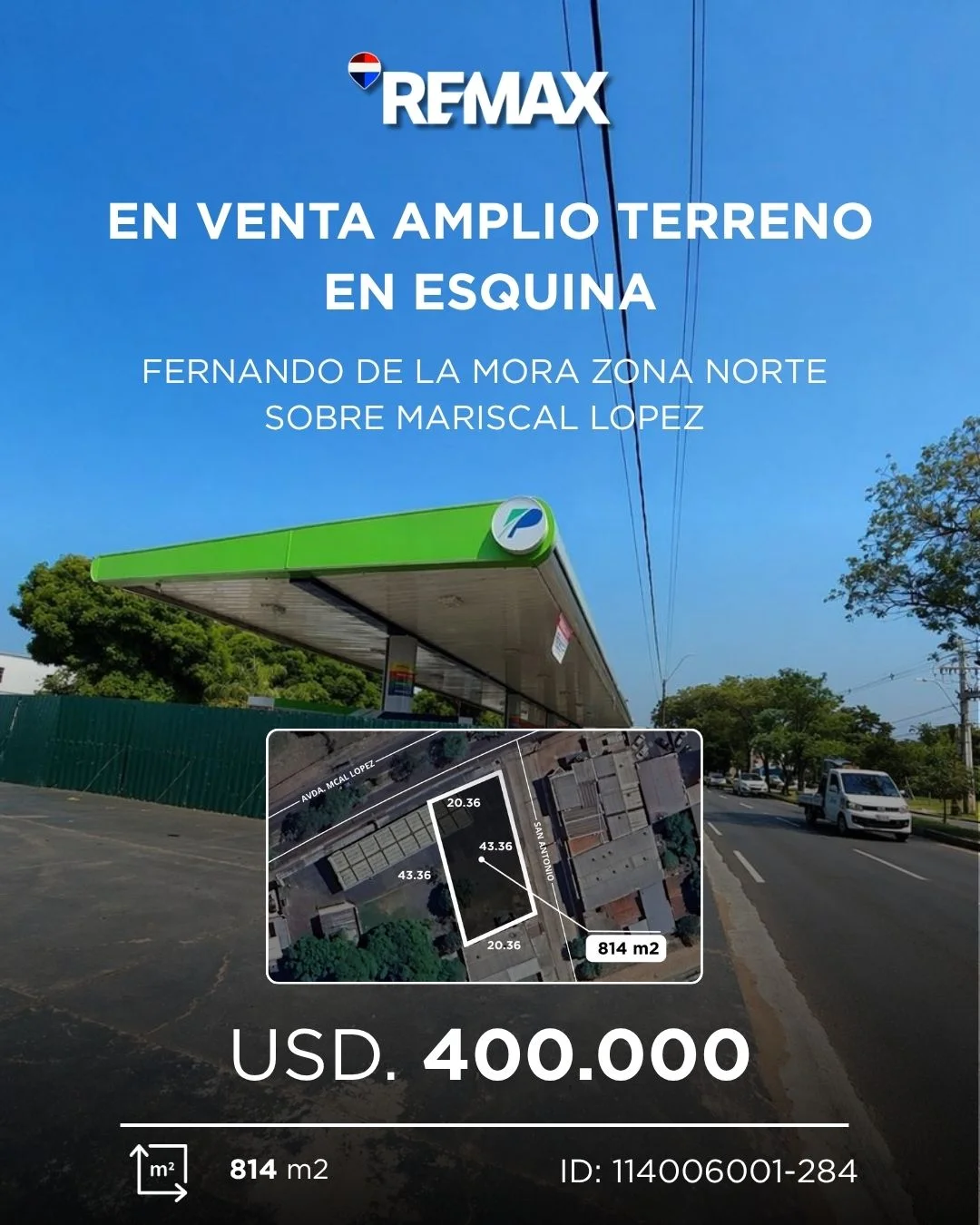 En venta amplio terreno en esquina sobre la Avenida Mariscal Lopez, en Fernando de la Mora - Zona Norte, a pasos de la Avenida Santa Teresa.