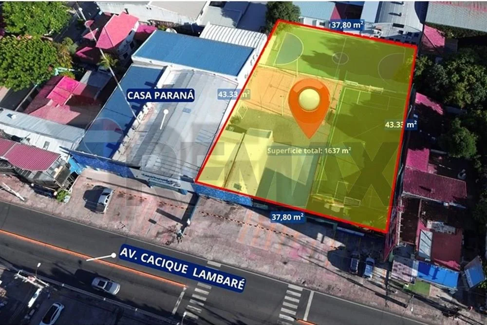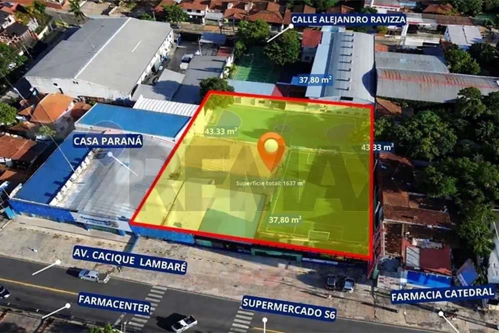 Cuenta con 37,80 metros de frente sobre Avda. Cacique Lambaré y 43,33 metros de fondo, totalizando una superficie de 1.637 m², con una proporción ideal para proyectos de gran visibilidad y fácil acceso.