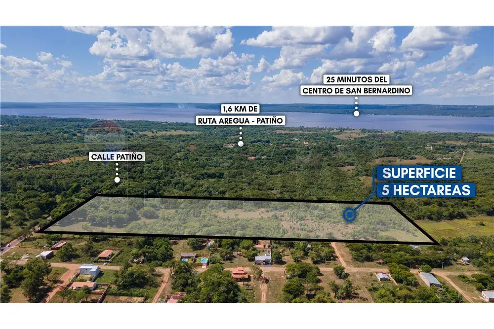 En Venta importante propiedad de 5 hectáreas en Itauguá ubicado sobre la ruta Patiño barrio Cañadita, cuenta con 107 metros de frente y más de 460 metros de fondo. Propiedad en altura con buena ubicación zona en constante desarrollo, sobre ruta transitada cercano a la Ruta 2. Ideal para inversión industrial, y construcción tinglados, galpones, ya sea para uso propio o para alquiler. Cuenta con permisos ambientales aprobados para uso industrial. Documentos listos para transferir.