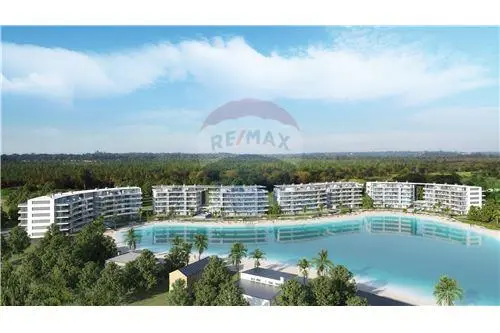 8 EDIFICIOS de departamentos con vistas a la laguna que bordean la playa.
