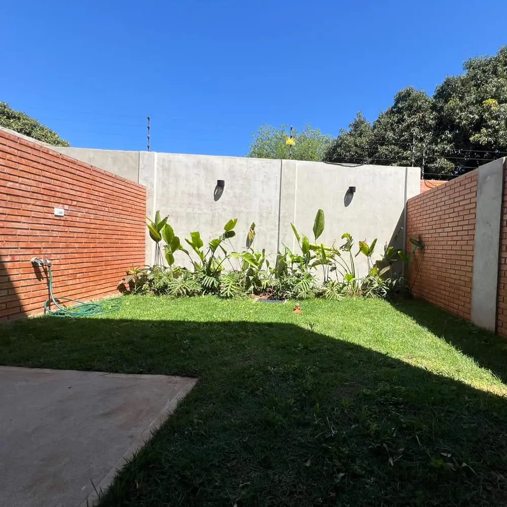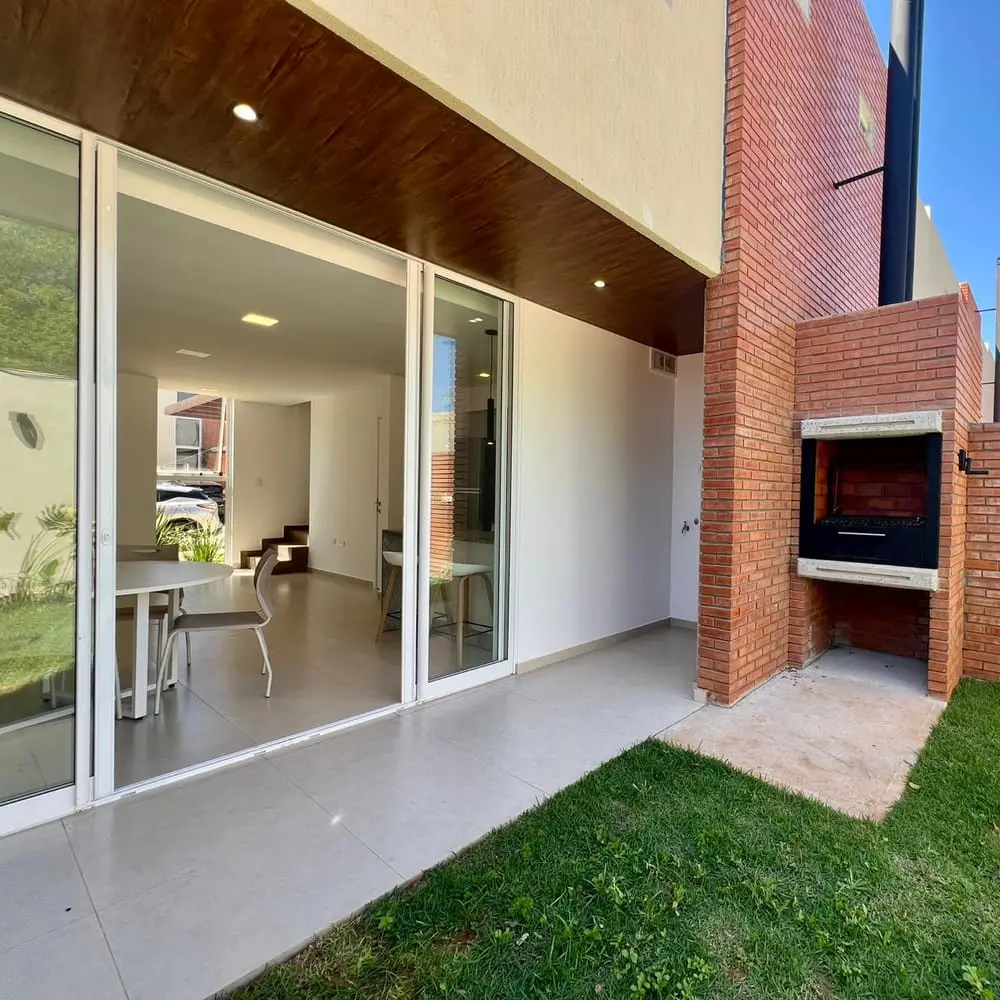 Bello jardín interno y parrilla