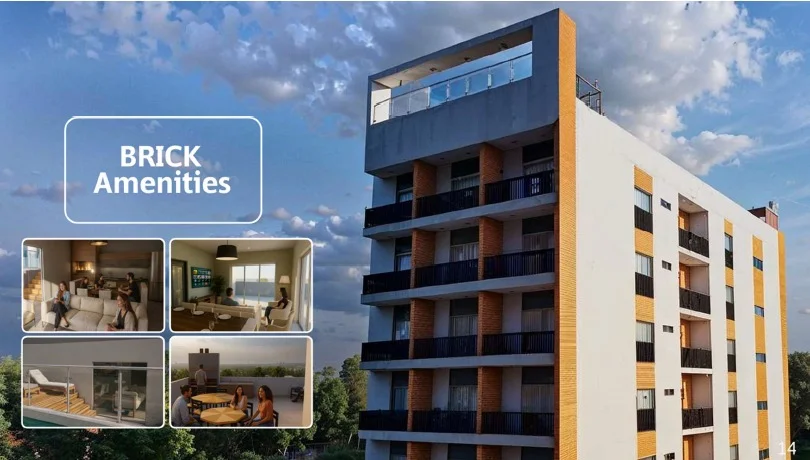 BRICK es un edificio de 7 niveles (5 niveles de departamentos), 35 unidades.