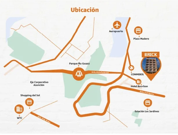 Ubicado a 5 minutos del Aeropuerto Silvio Pettirossi, a 15 minutos del Comite Olimpico Paraguayo y del Eje Corporativo de Asuncion