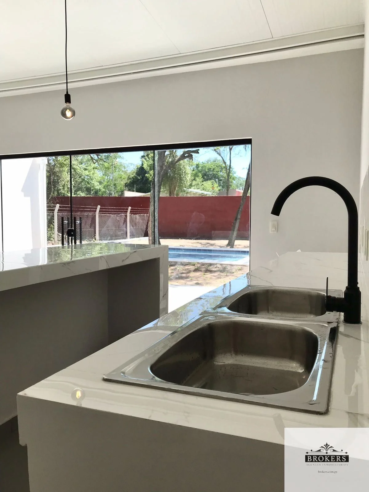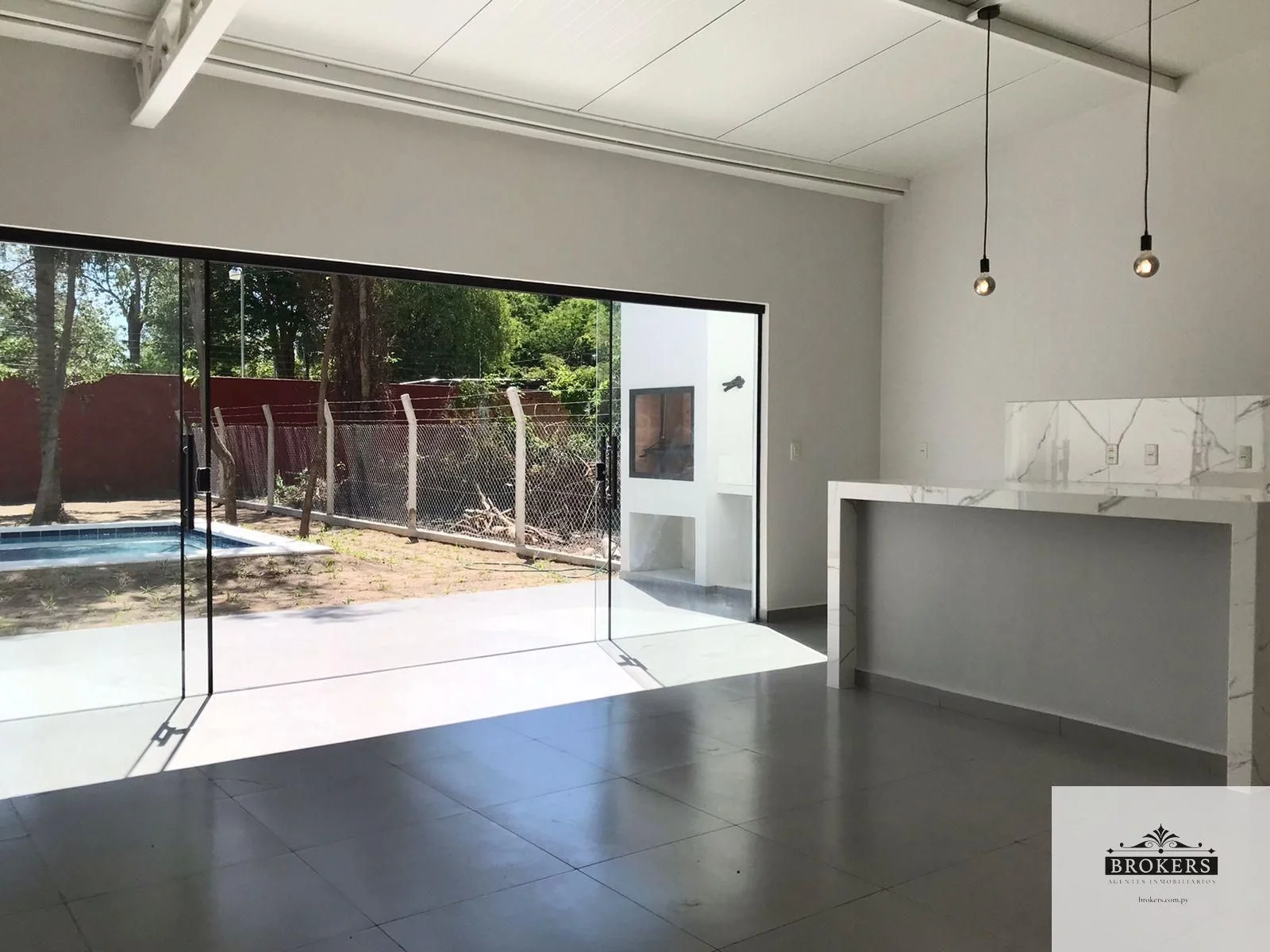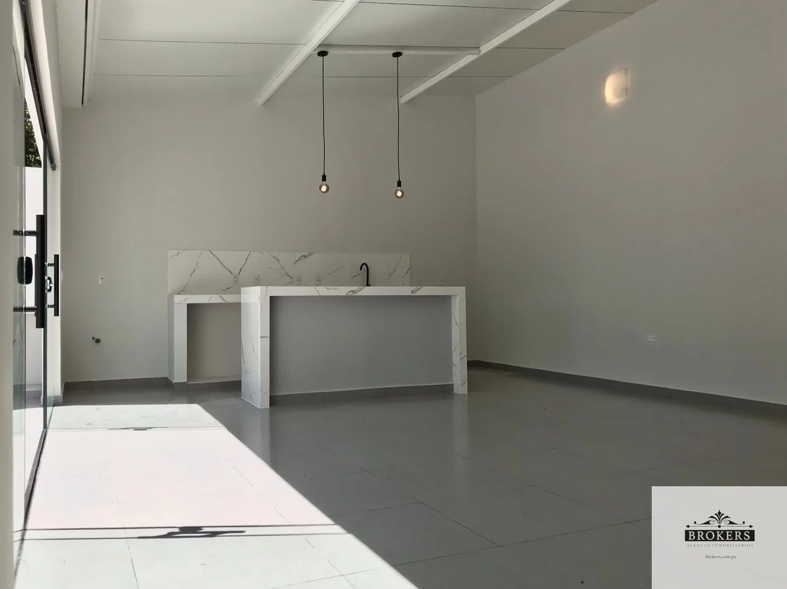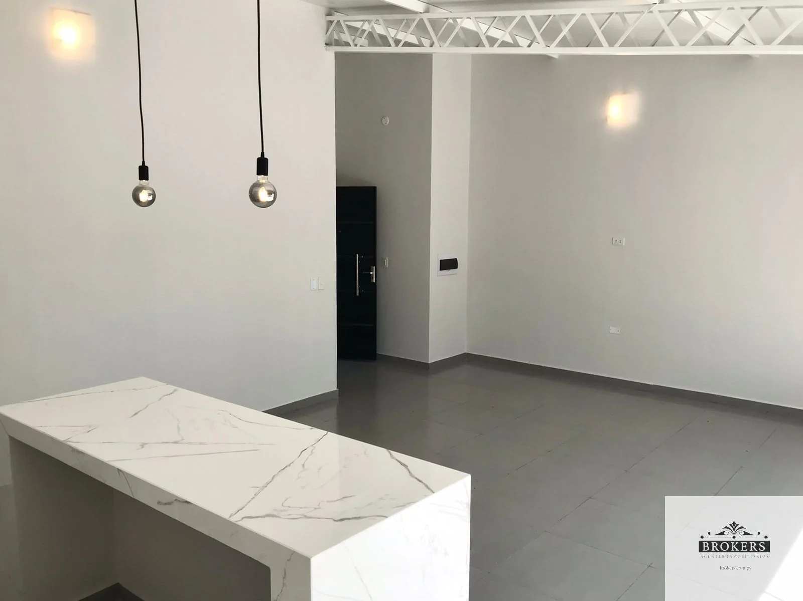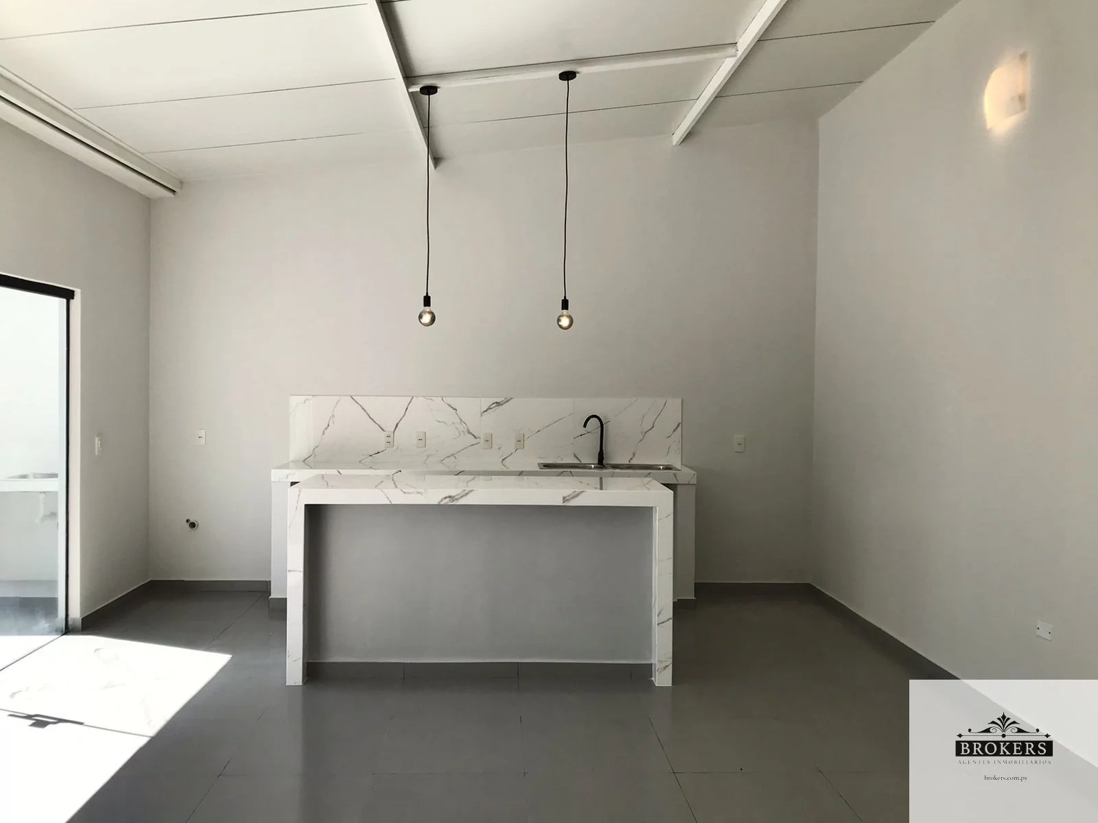 -Sala y cocina/comedor integrado con isla de porcelanato