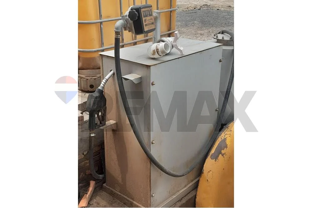 Estación de servicio interna para expendio de combustible (tanque de 10.000 litros), con cargador a pico y depósitos para herramientas y provisiones.