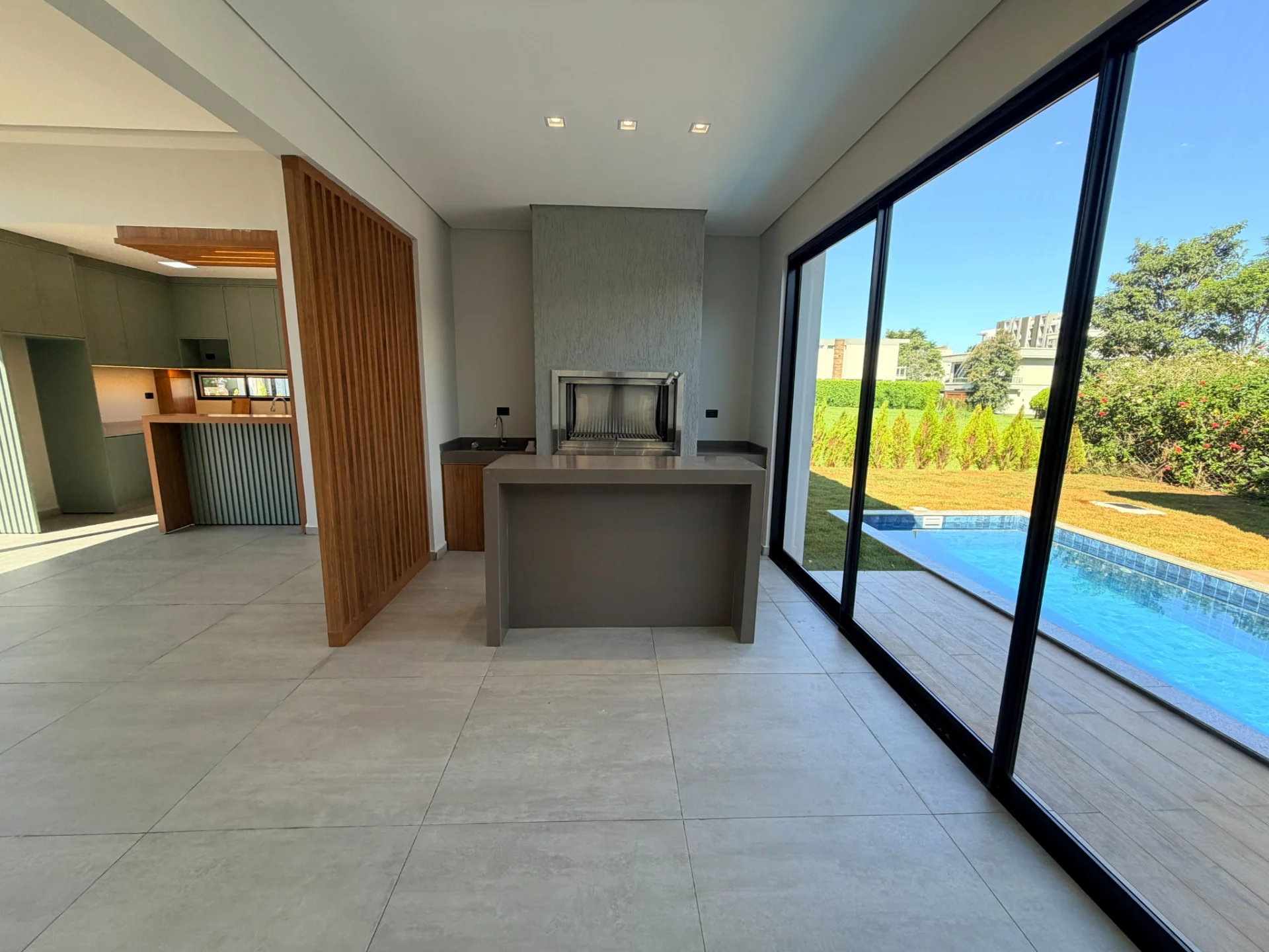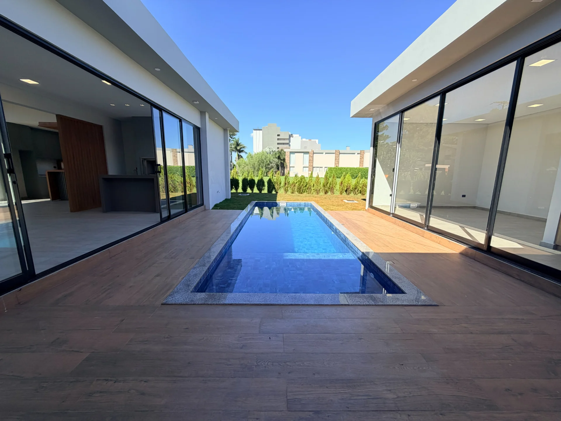 La arquitectura moderna se destaca por sus grandes ventanales, que permiten una excelente iluminación natural y vistas privilegiadas hacia la piscina y áreas verdes ????