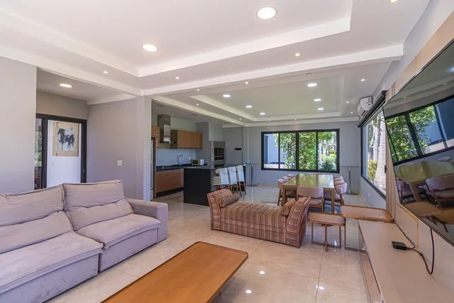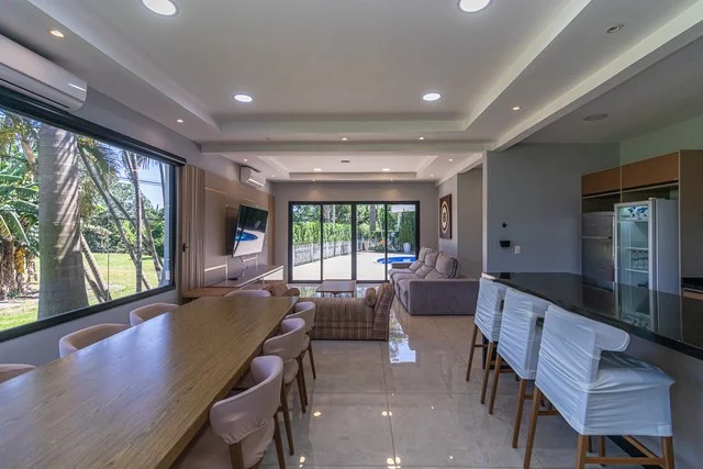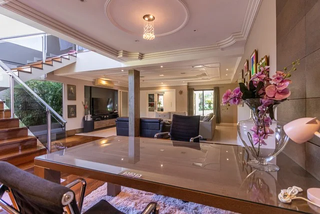 Esta moderna residencia de dos niveles se construye sobre un terreno de 1.426 metros cuadrados y cuenta con una construcción de 1.000 metros cuadrados, ofreciendo un diseño lleno de luz natural en cada uno de sus elegantes ambientes. Al ingresar, nos recibe un amplio salón de distribución, que da paso a dos escritorios y una imponente sala, mientras que el comedor está ubicado en una zona más privada, ideal para reuniones familiares o con amigos.