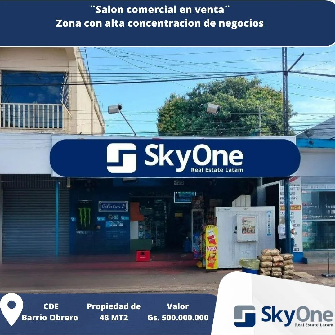 Se vende salón comercial ubicado en el Barrio Obrero, una de las zonas más dinámicas y comerciales de Ciudad del Este. Ideal para instalar tu negocio.
