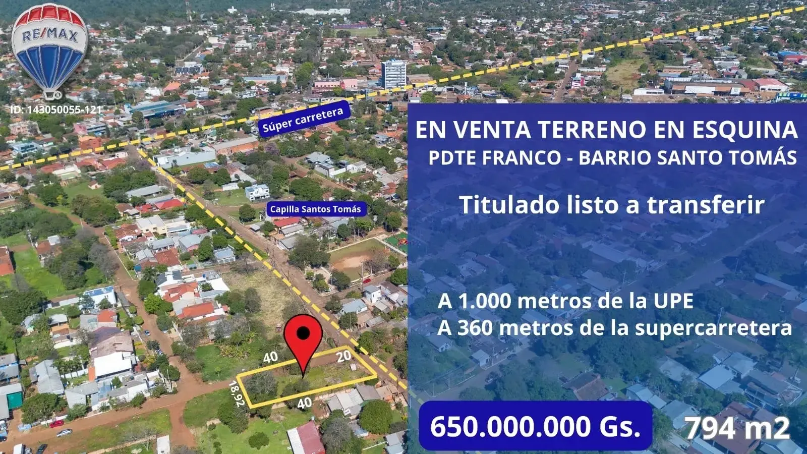 Terreno en Esquina en Venta – Barrio Santo Tomás, Pdte. Franco