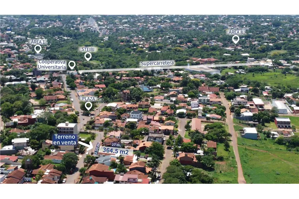 Ubicado en un barrio tranquilo y seguro en Villa Bancaria, uno de los barrios más importantes de la ciudad. Sobre calle asfaltada, a 430 metros de la supercarretera y a 180 metros de la Av. Amado Benitez Gamarra. De fácil acceso y cercano a colegios, centros gastronómicos, comercios, cooperativas, supermercados, etc. El terreno que estabas buscando para construir el futuro tuyo y el de tu familia.