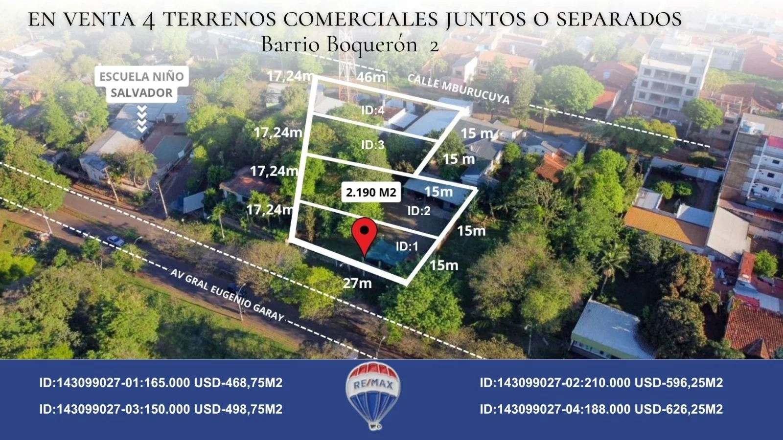 sobre la AV. GRAL. EUGUENIO GARAY con salida a la CALLE MBURUCUYA, estos terrenos