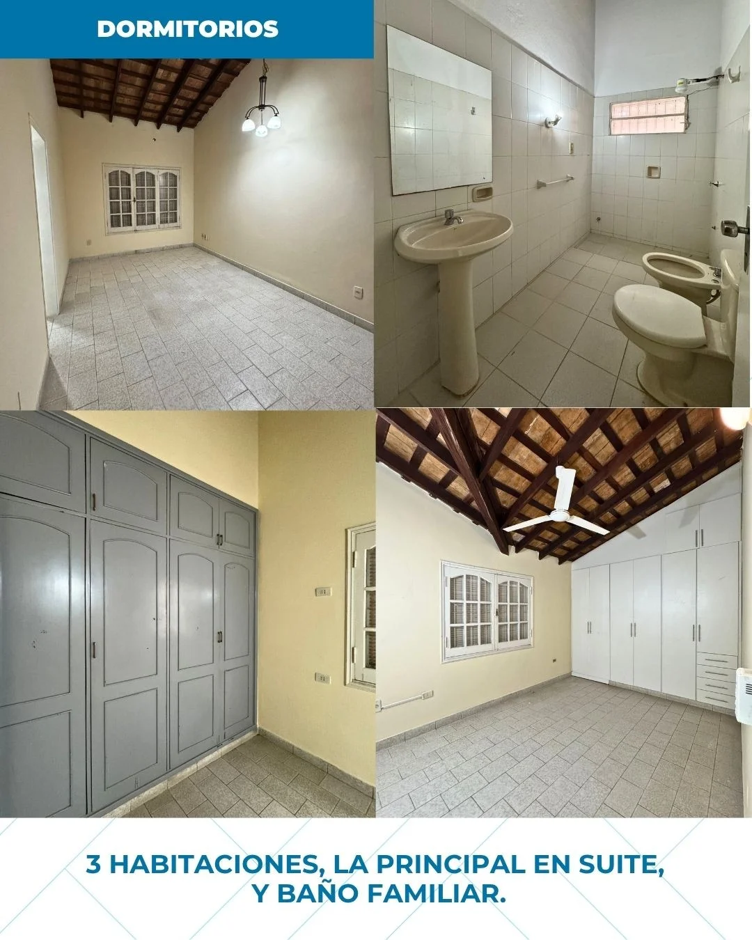 ?️3 dormitorios (1 en suite) todos con placares.