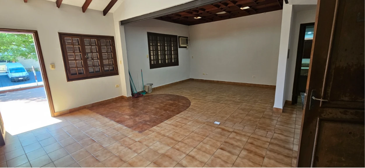 ALQUILER PARA USO COMERCIAL - BARRIO LAS MERCEDES Chalet en alquiler en ubicación privilegiada. Patio frontal tipo terraza con pequeño jardín Ambiente 1: Planta libre de 70 m2 Ambiente 2: Espacio cubierto de 20 m2 con parrilla Kitchenette amoblado y con anafe de dos hornallas Amplio baño completo con ducha Aire Acondicionado Cochera frontal ALQUILER MENSUAL: G. ***IVA Incluido