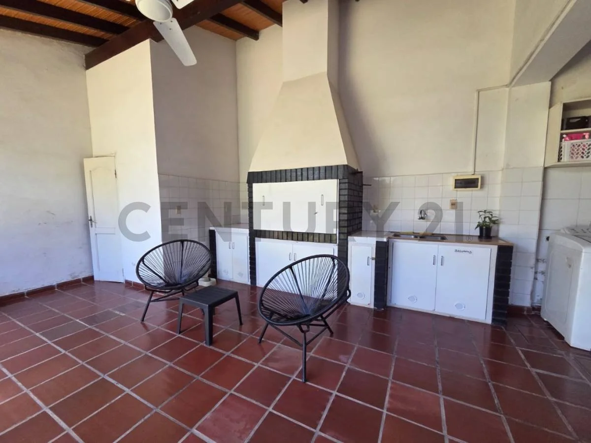 En el patio trasero, emapastado con un quincho, area de servicio y lavadero.
