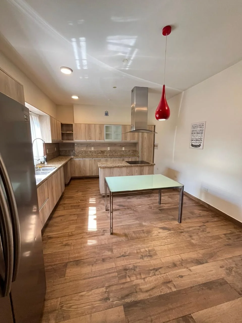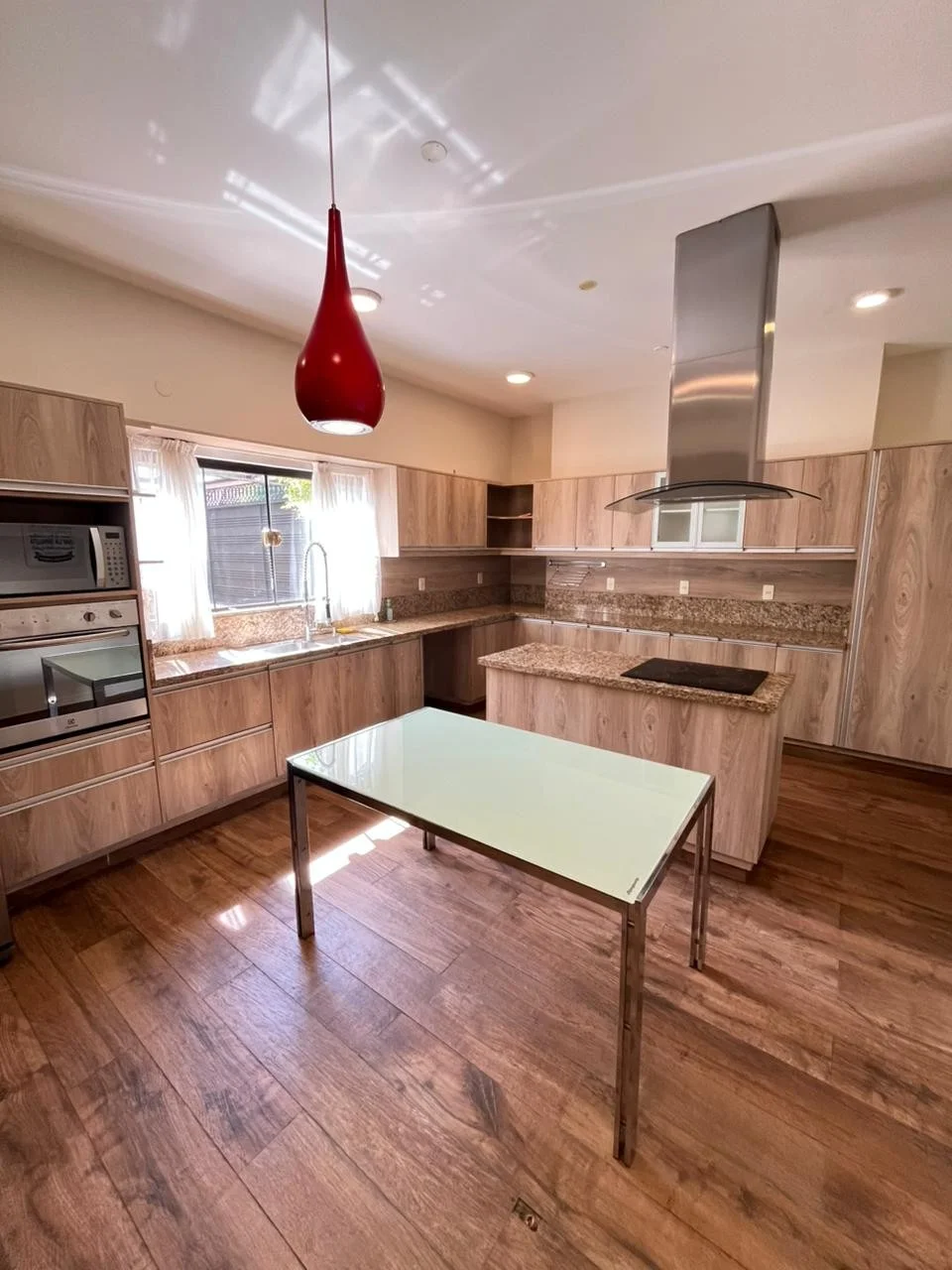 - Cocina amoblada con anafe, heladera y freezer, horno eléctrico, microondas, extractor, horno empotrado