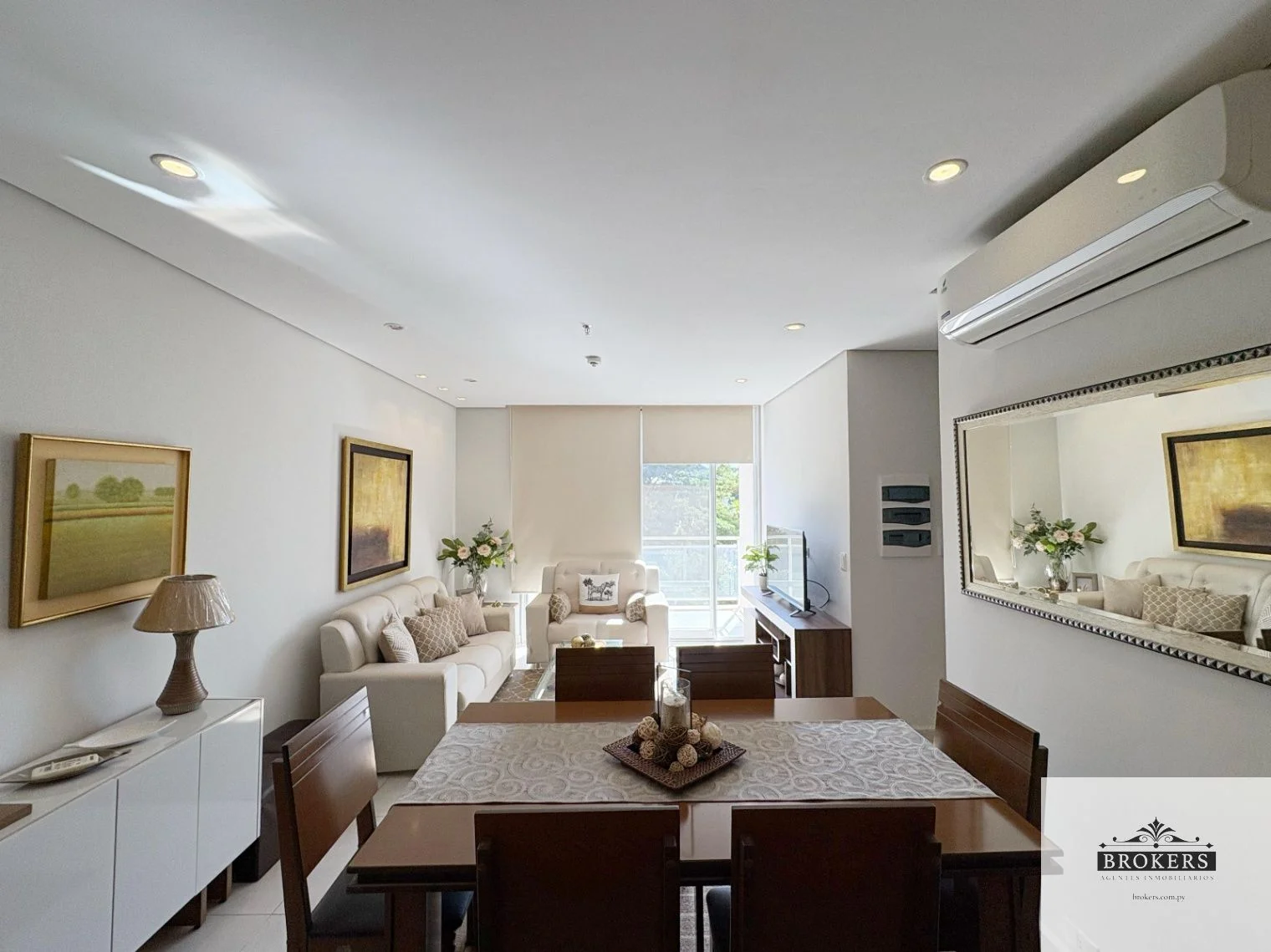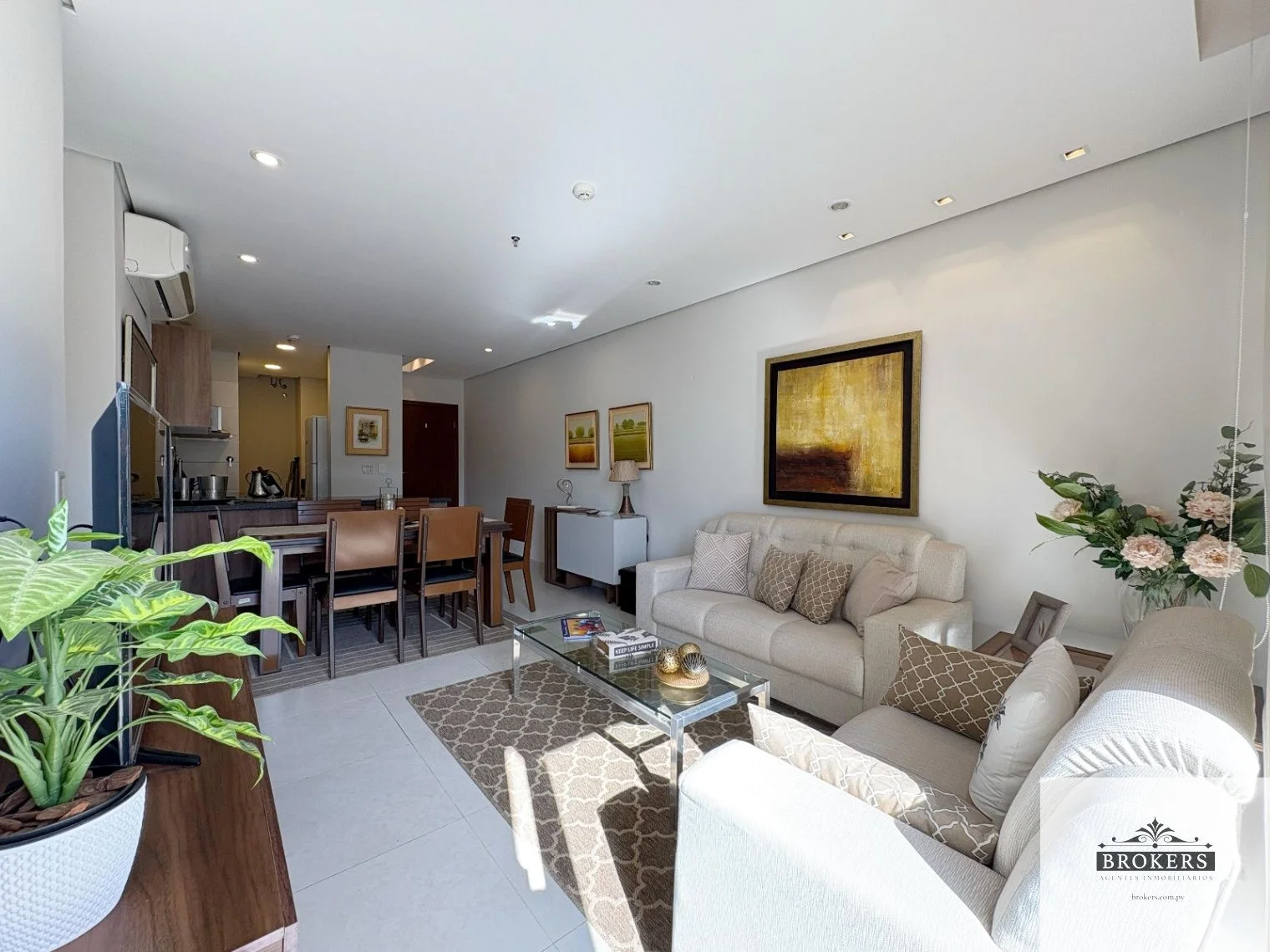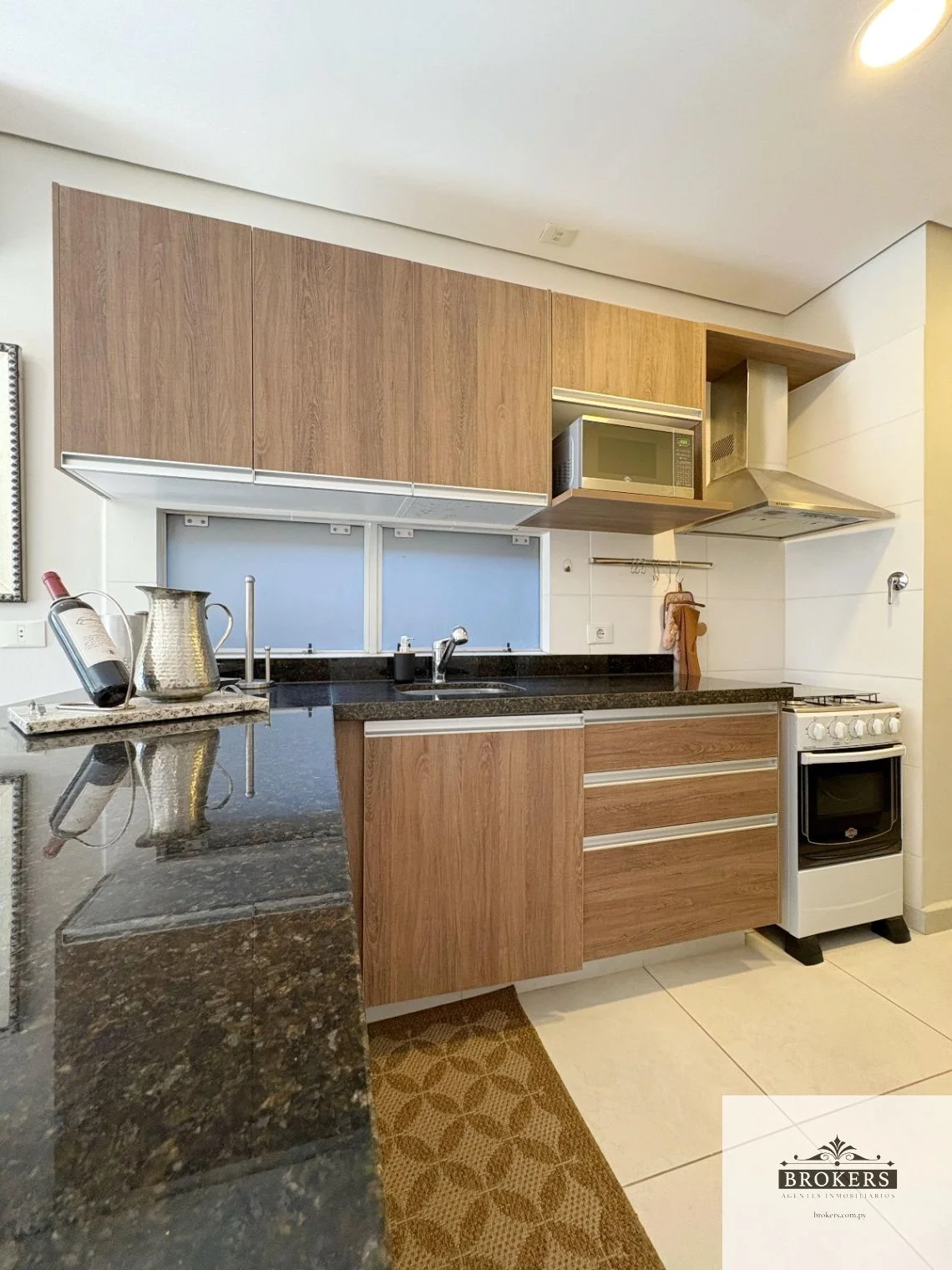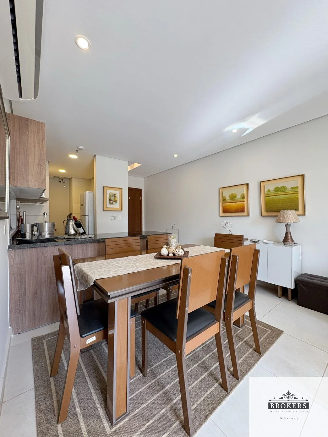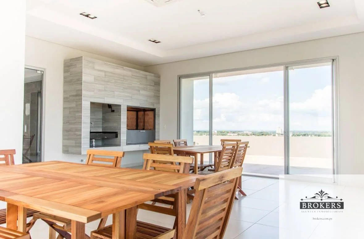 Living-comedor, Cocina integrada, Balcón con parrilla, 1 baño social, 2 dormitorios (1 suite), 1 baño familiar, 1 cochera.