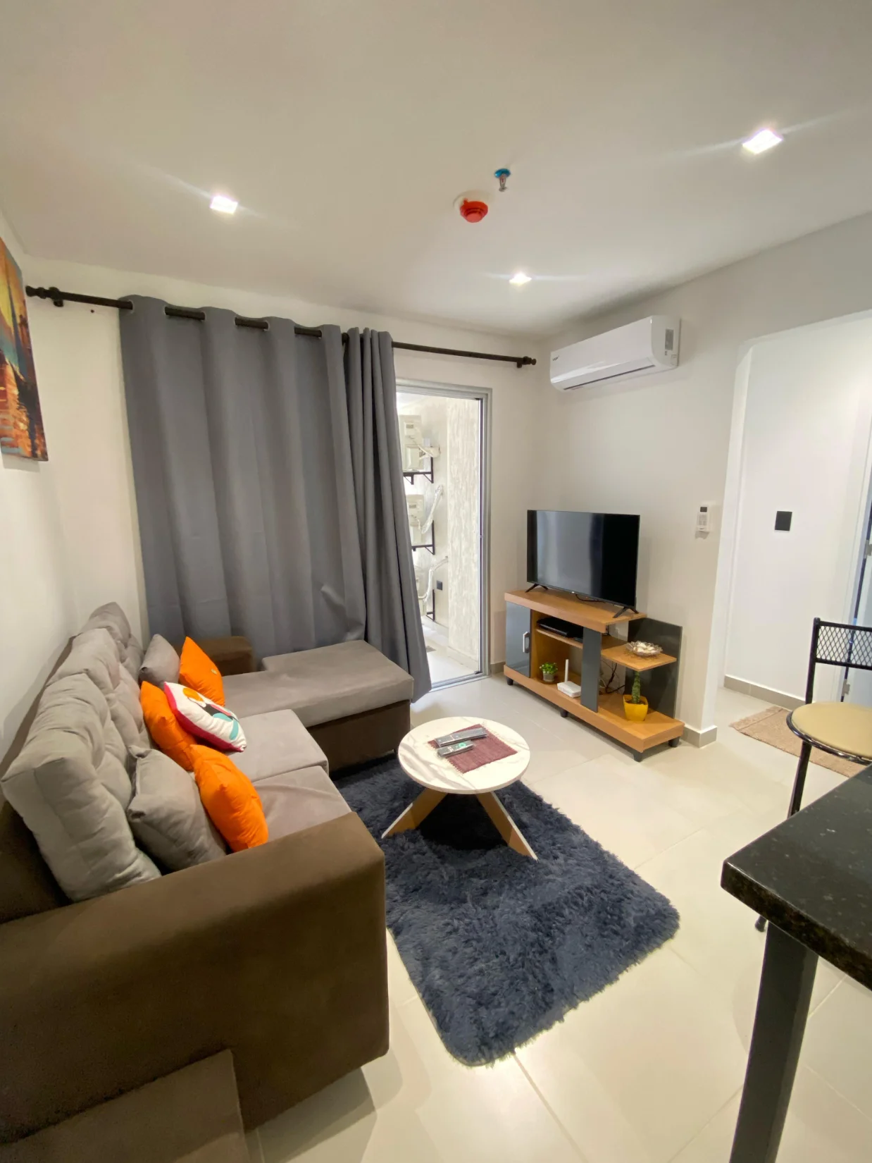 ▪️sala con sofá incluido, televisor, aire acondicionado