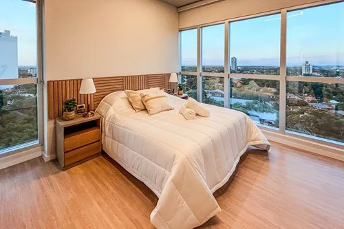 * 2 dormitorios (uno en suite) * Cocina semiintegrada con anafe, horno, extractor, conexión para lavarropas * Living comedor * Baño social, compartido con la segunda habitación * Balcón * Cochera incluida * Aires acondicionados en todos los ambientes y placares empotrados * Piso 14 * Superficie: 90m² * Tipología A *Amenities y servicios del edificio:* * Piscina panorámica en piso 43 * Solárium con vistas a toda la ciudad * Gimnasio totalmente equipado * Quinchos climatizados * Lobby de doble altura con seguridad 24 hs * Ascensores de alta velocidad ???? *Precio de Alquiler: USD 1.800