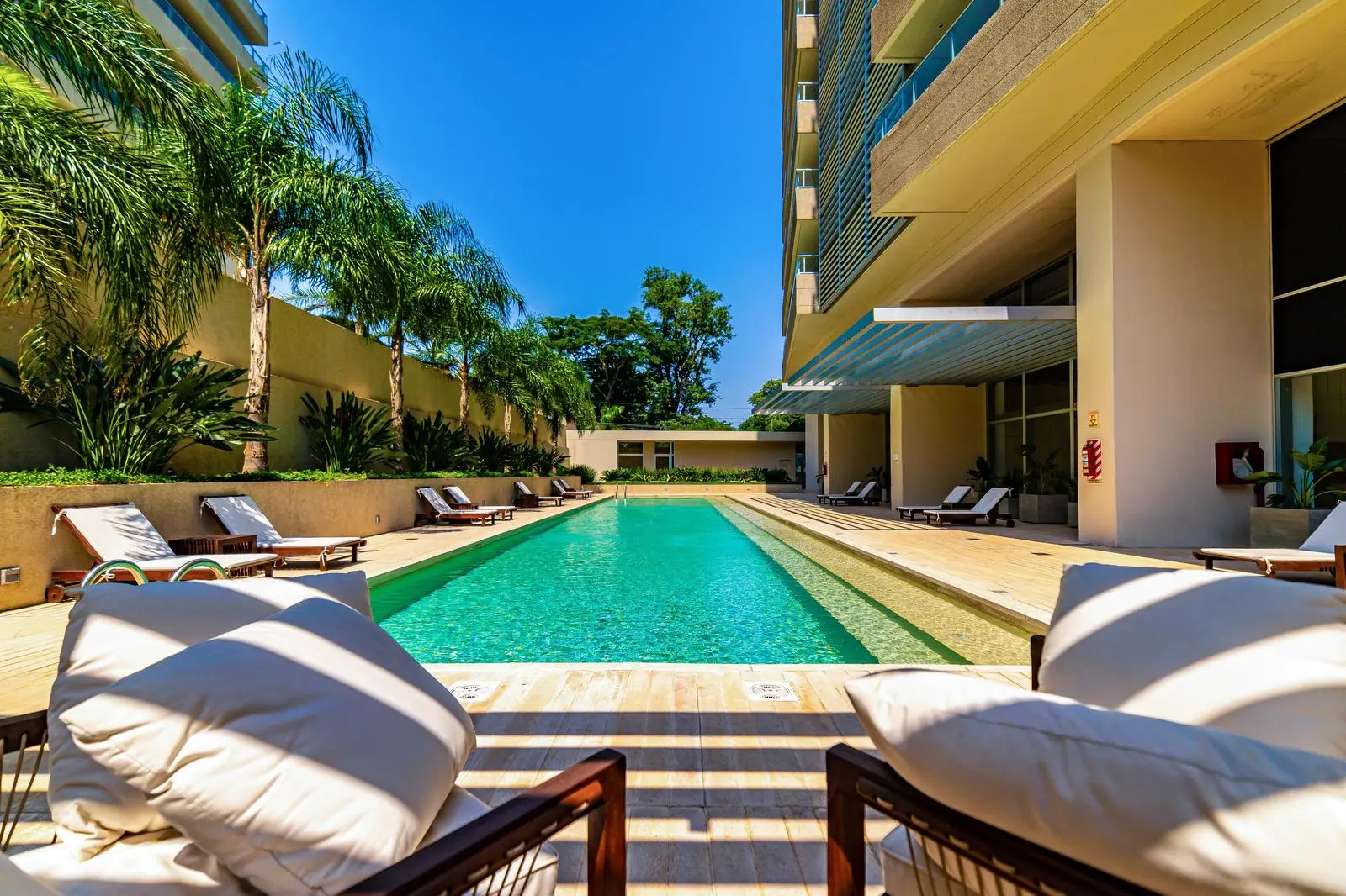 Amenities: Guardia 24 horas, Conserje hasta la medianoche, Gimnasio, Peluquería, Sauna seco / sala de masajes, Salón multiusos para 80 a 100 personas, Sala de choferes y guardias, Vestuarios sexados para personal, Kid’s club, Piscina semi olímpica para adultos y piscina separada para niños