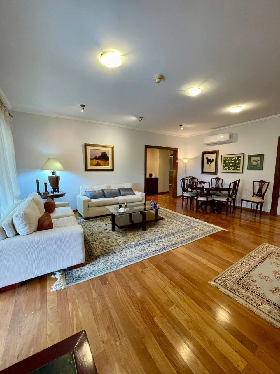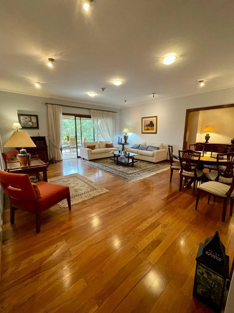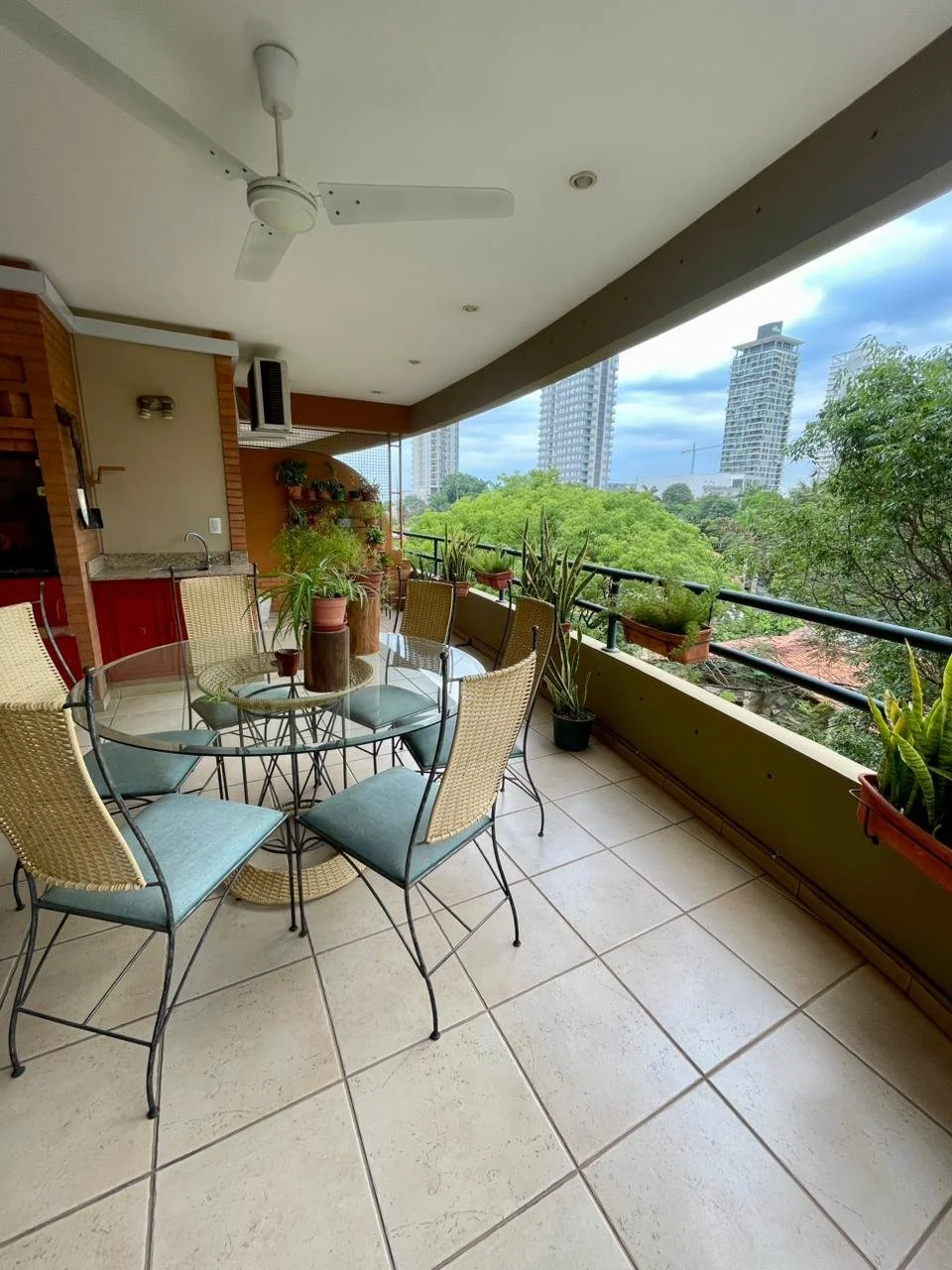 *Detalles** 210m2 * 1 dormitorio principal en suite con placares* 2 dormitorios secundarios que comparten baño (uno de ellos esta como escritorio y se puede agregar camas)* Living y comedor amplios e integrados* Baño social* Amplio balcón con vista al eje corporativo* Parrilla* Cocina totalmente equipada y amoblada (Incluye vajillería y cubiertos)* Área de lavadero completa con lavarropas y secarropas* Área de servicio completa* 2 cocheras *Amenities**Salón con parrilla y área climatizada , cuenta con mesas , sillas y cubiertos para evento de 20 pers.*Terraza al aire libre