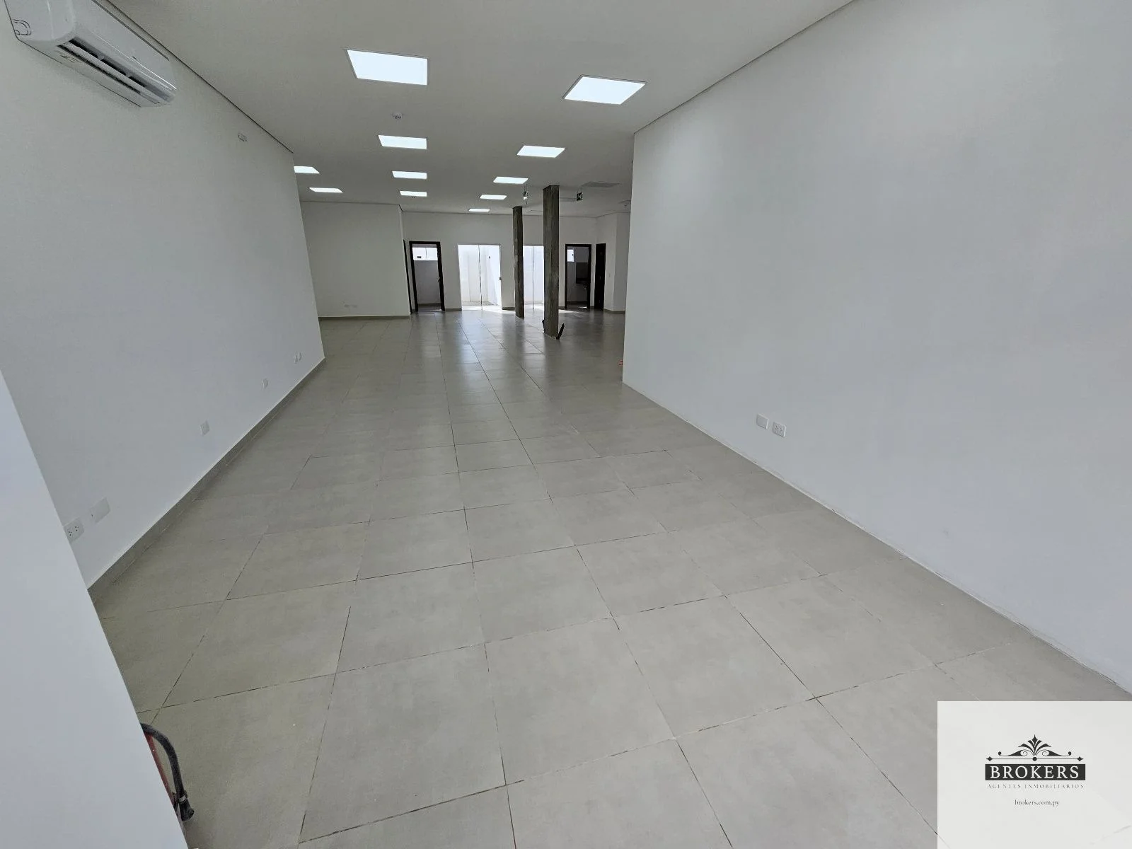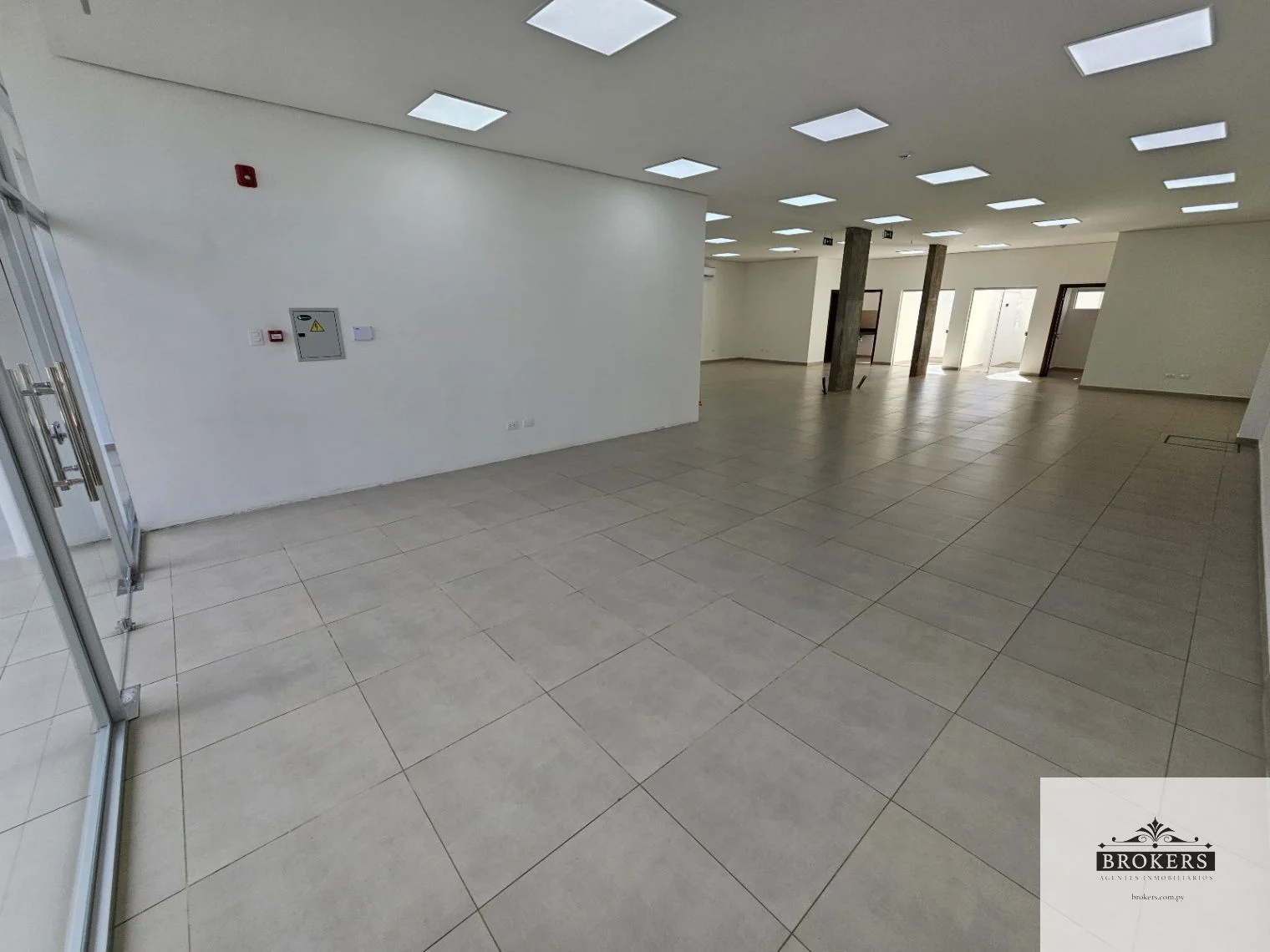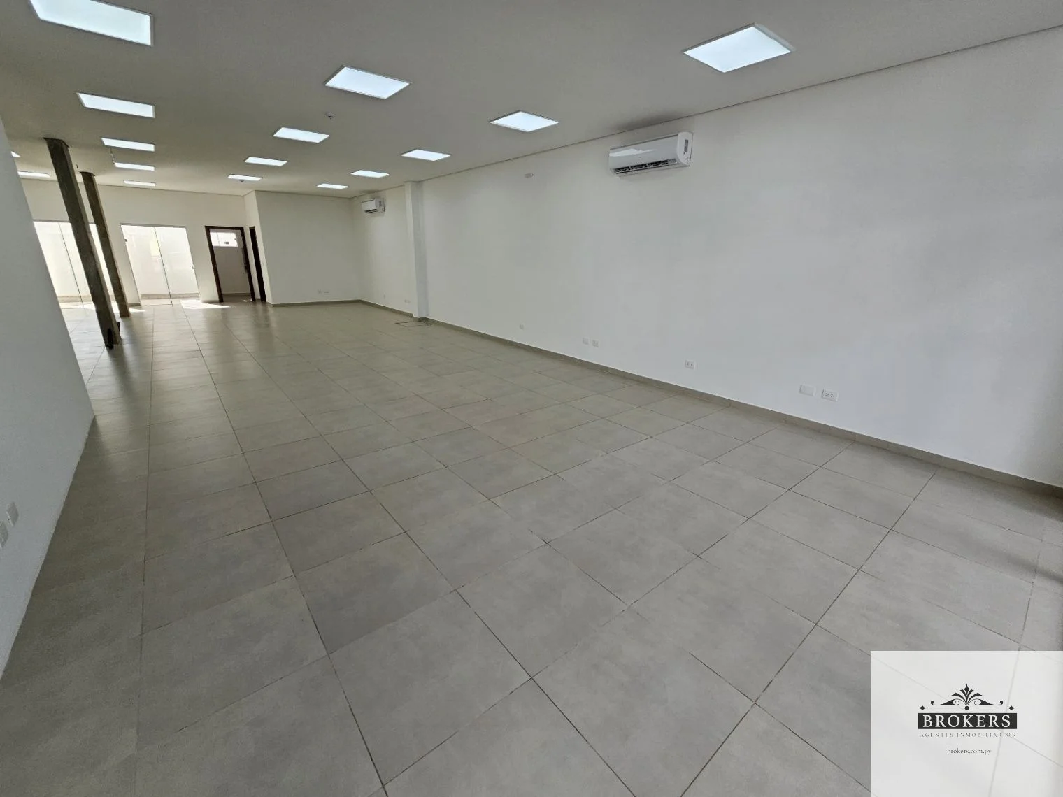 Planta Baja: Salón de 240 m2 con 2 baños sexados con 2 boxes de inodoro cada uno, con mesadas de granito, un depósito, doble kitchenette y doble patio exterior. Todos los ambientes cuentan con aire acondicionado split, sistema contra incendio, incluye 2 estacionamientos al frente.
