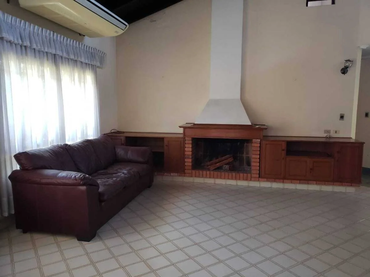 Sala de estar con chimenea semi amoblada empotrada