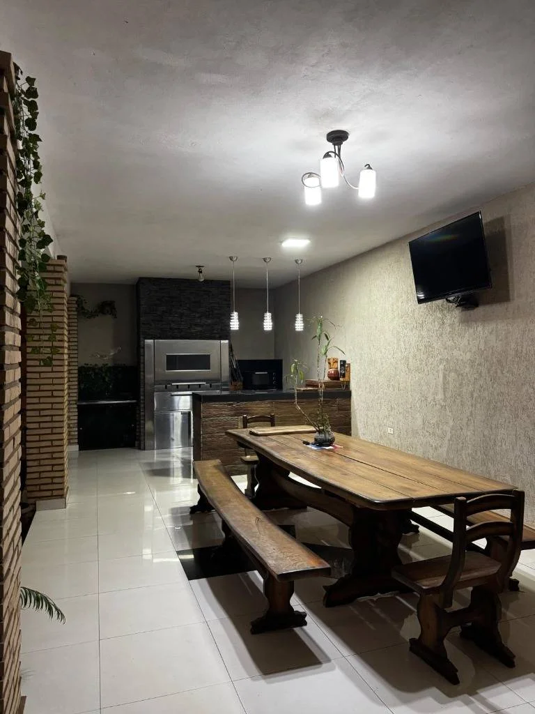 Quincho moderno con terraza, perfecto para asados y reuniones al aire libre en un ambiente acogedor.
