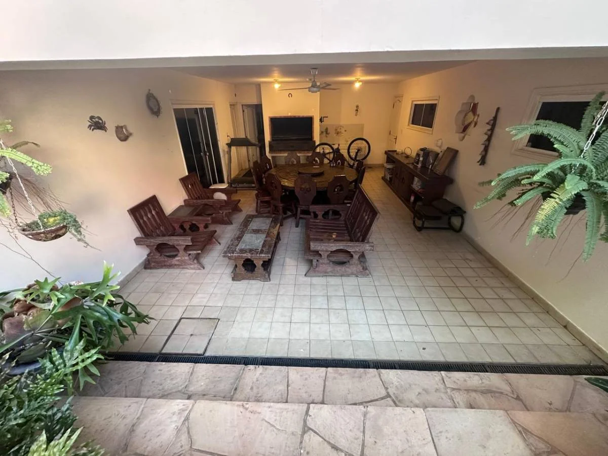 Quincho integrado al patio con parrilla..