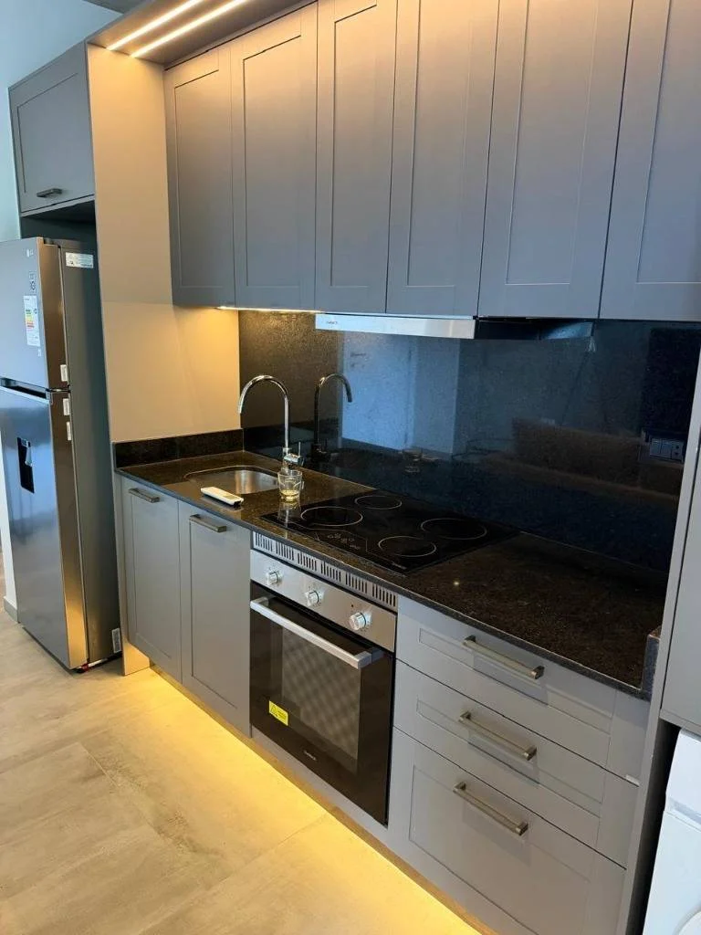 - Cocina amoblada e integrada (muebles, anafe, campana, horno)