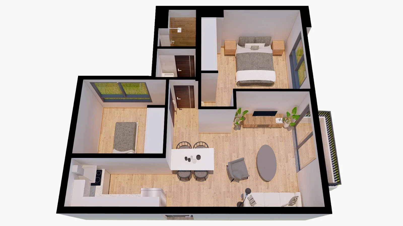 - Paredes con acabado en látex blanco.