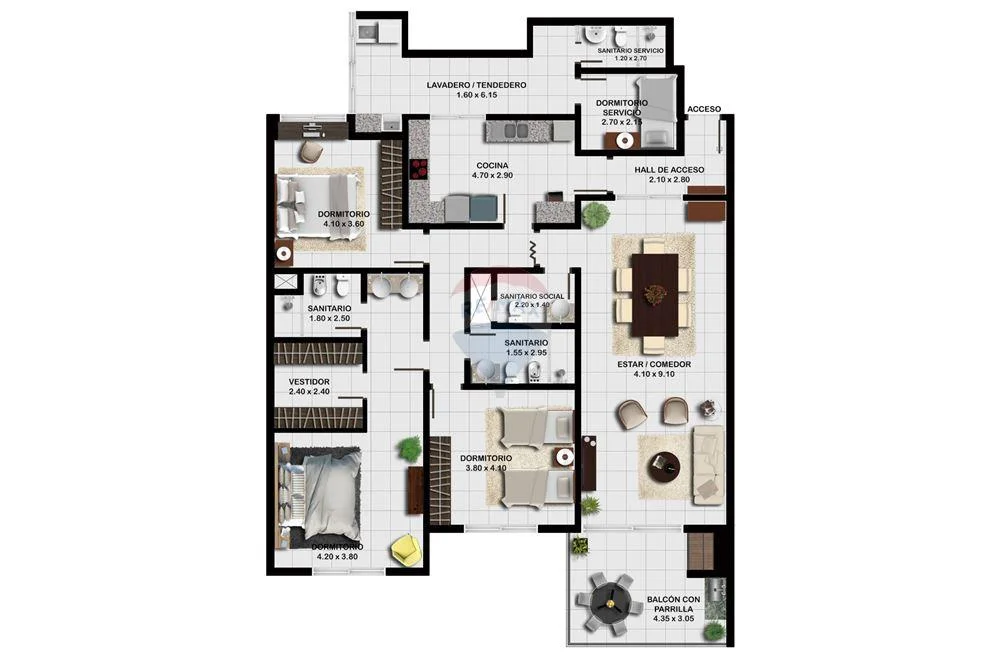 Con una inversión de 315.000 USD, este departamento destaca por sus 207 m² de superficie propia, un metraje inusual que garantiza ambientes cómodos y bien ventilados. La distribución interna prioriza la privacidad, contando con una cocina amoblada e independiente del área social, y un amplio living-comedor que se integra a un balcón con parrilla propia para el disfrute al aire libre. Con tres dormitorios —incluyendo una suite principal— y un área de servicio completa con habitación y baño, la propiedad está preparada para satisfacer las necesidades de un hogar moderno que valora tanto el diseño como la operatividad diaria.