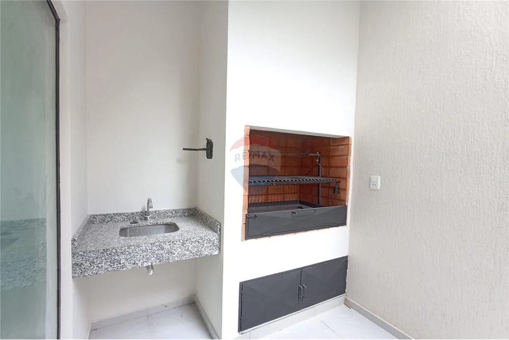 Pequeño quincho con parrilla, mesada con bacha
