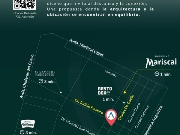???? Ubicación: Sobre Charles de Gaulle – Zona estratégica, a pasos de la Cuadrita y del Shopping Mariscal, cerca de la Avda Republica Argentina y con rápido acceso al Eje Corporativo de Asunción