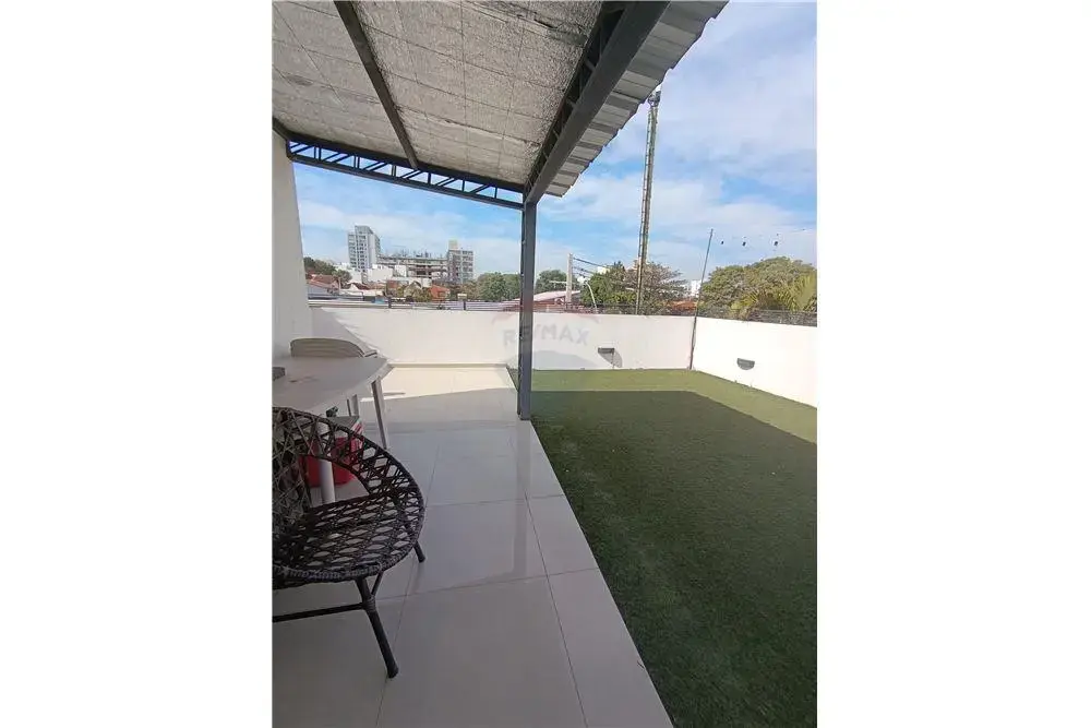 Gran terraza cubierta con pasto sintético