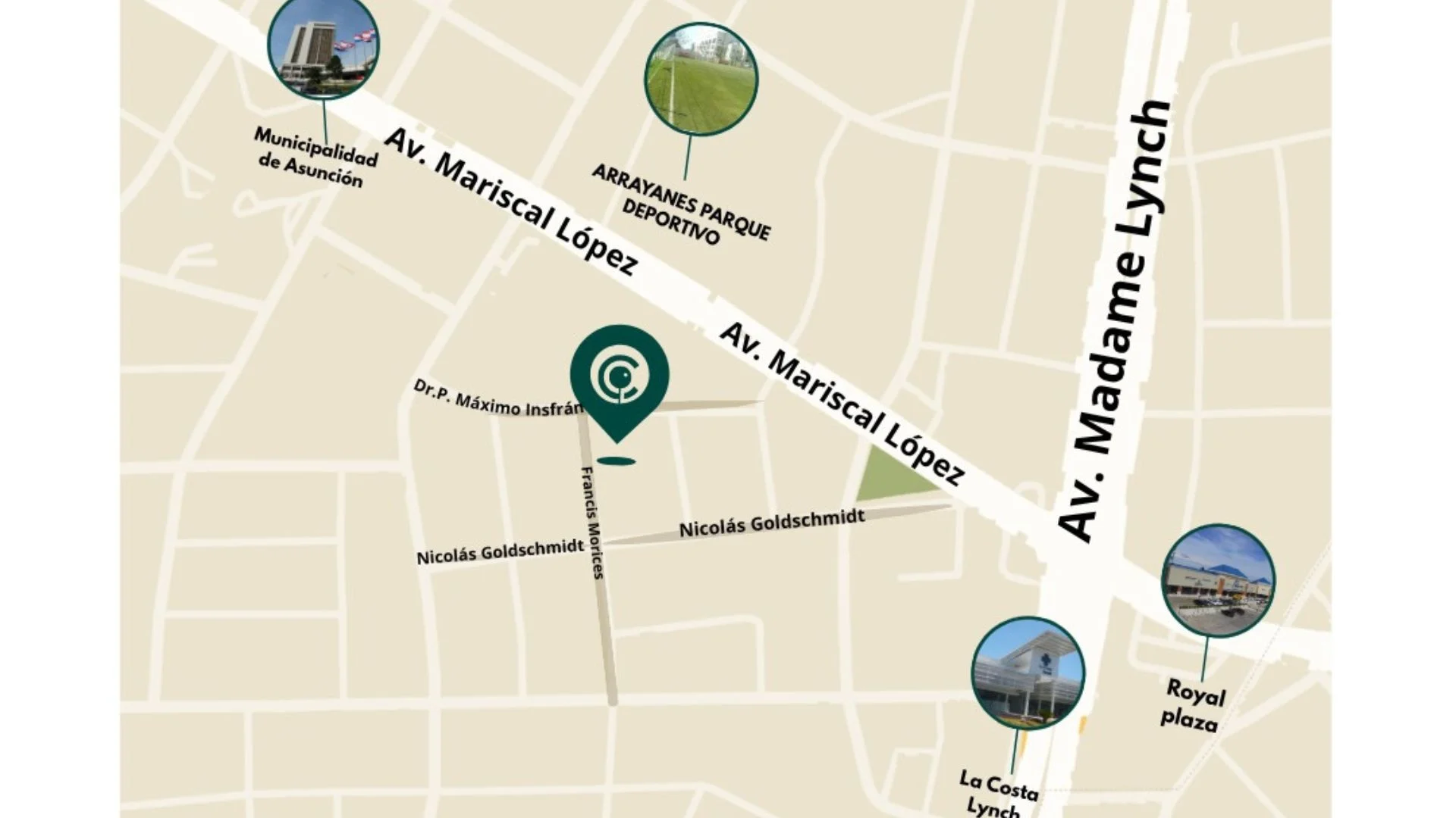 Principales avenidas: Mariscal López, Madame Lynch y Av Boggiani.