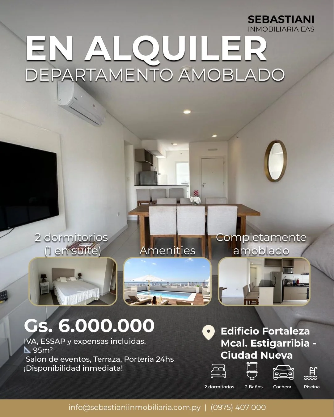?♀️ Amenities: piscina, terraza y salón de eventos