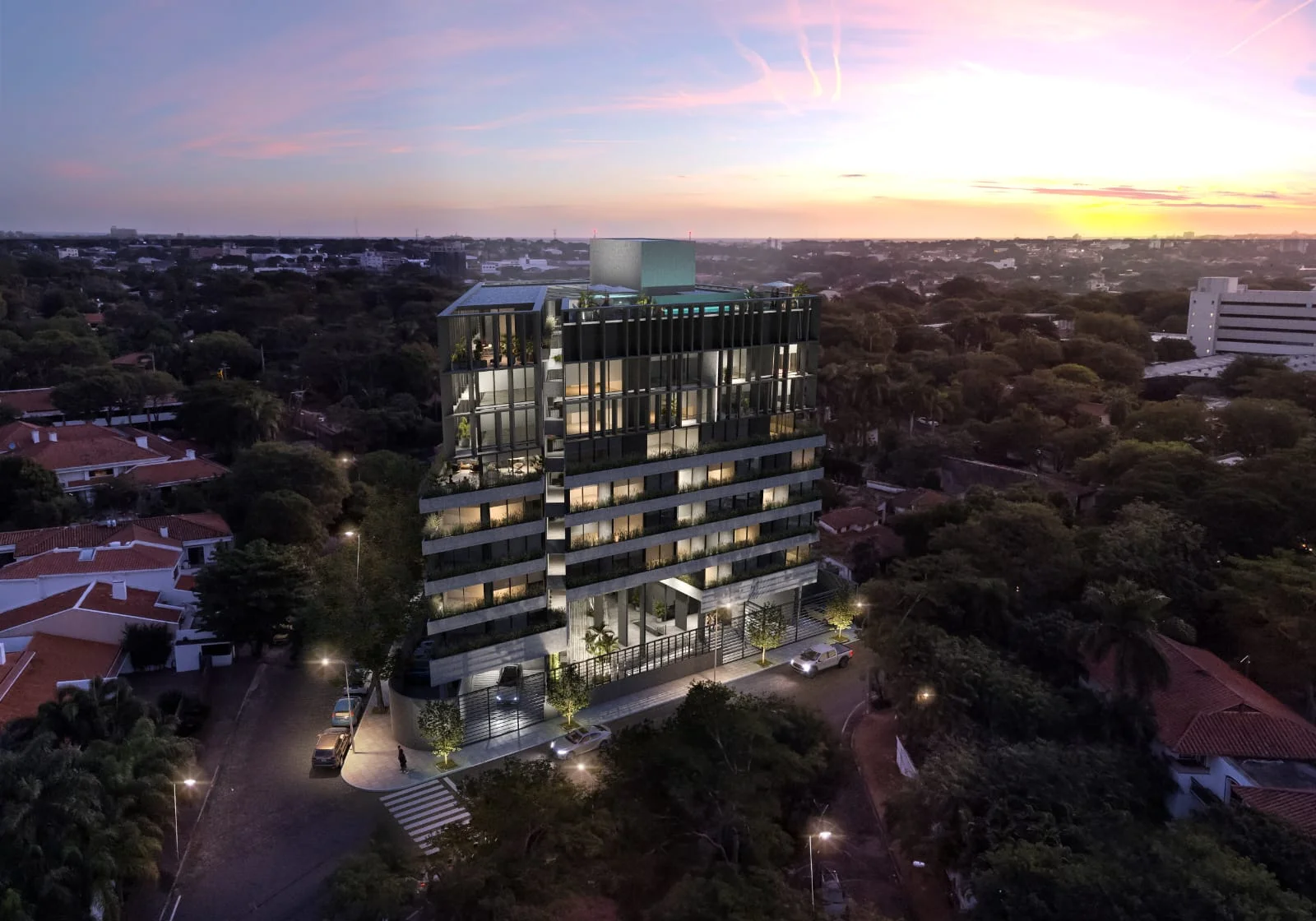 • Amenidades: Solarium, Quinchos, Generador Eléctrico, Pet Shower, Vestuario para personal Parrillero, Piscina, Laundry, Lockers, Estación de carga para autos eléctricos, Depósitos, Salón multiuso, Gimnasio, Sunset Lounge.