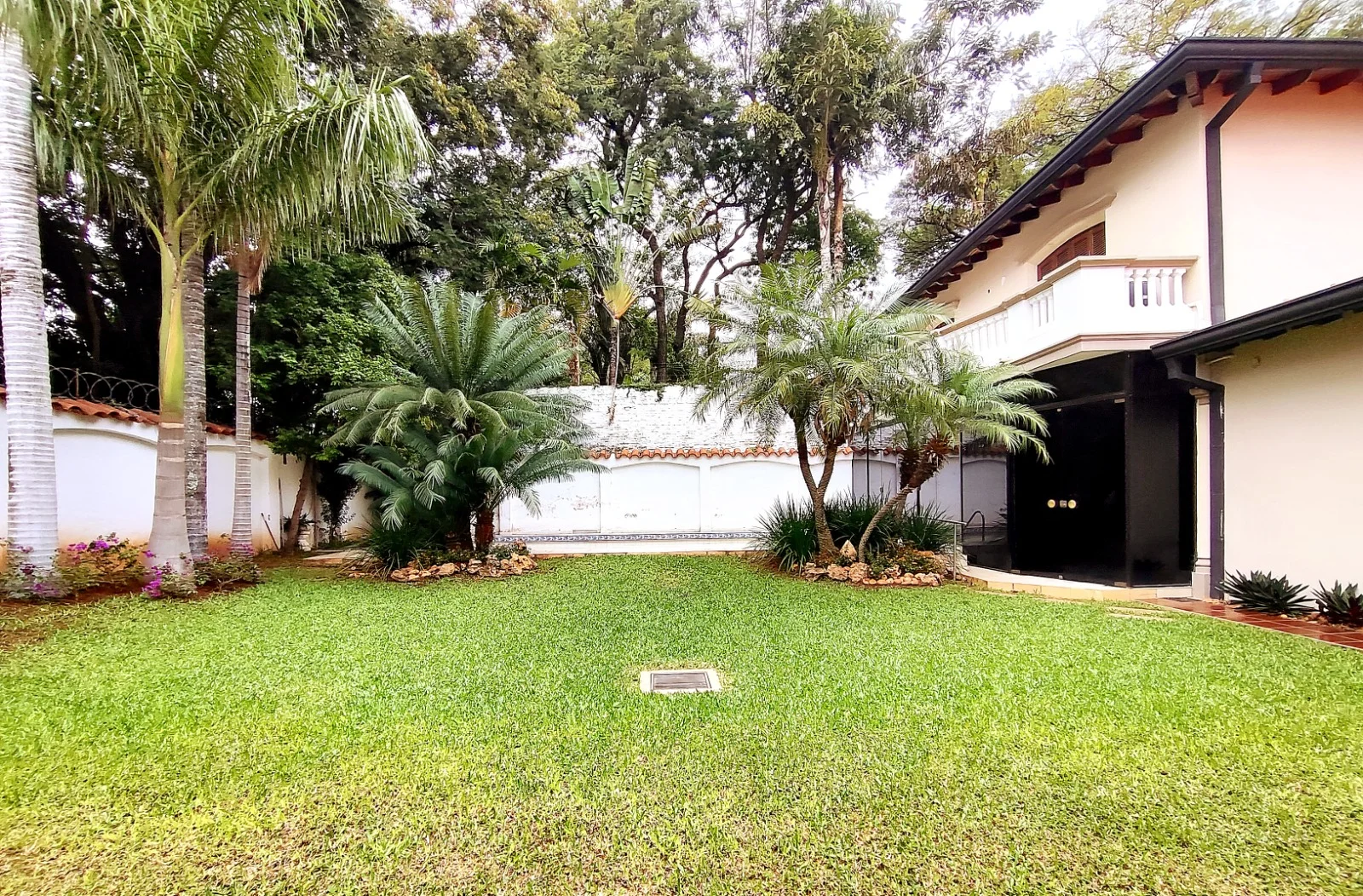 Jardín con piscina y área con potencial expansión.