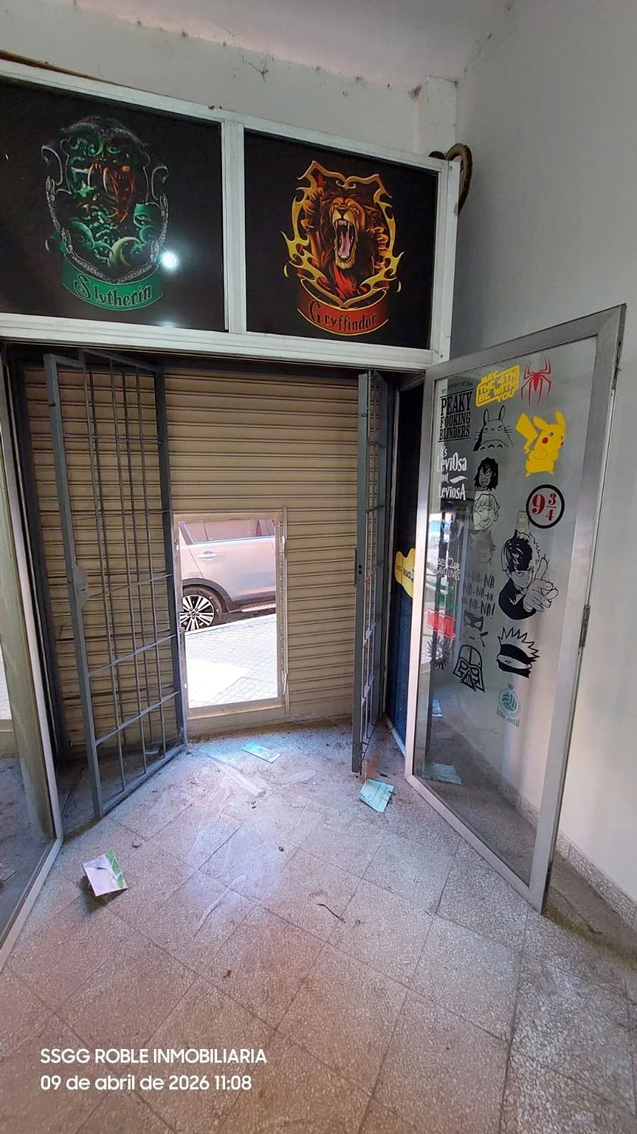 Cortina metálica y puerta de vidrio interna