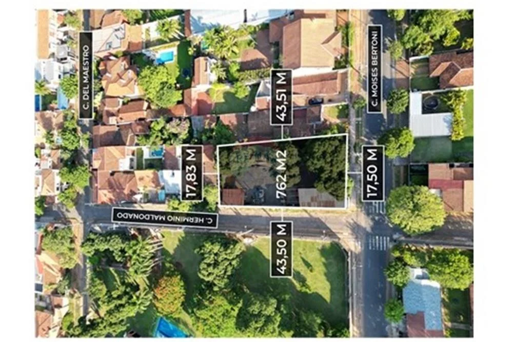 Superficie de Norte: 17,83m2; Sur (Sobre Calle Bertoni): 17,50m2; Este: 43,50m2; Oeste (sobre calle Maldonado): 43,51m2