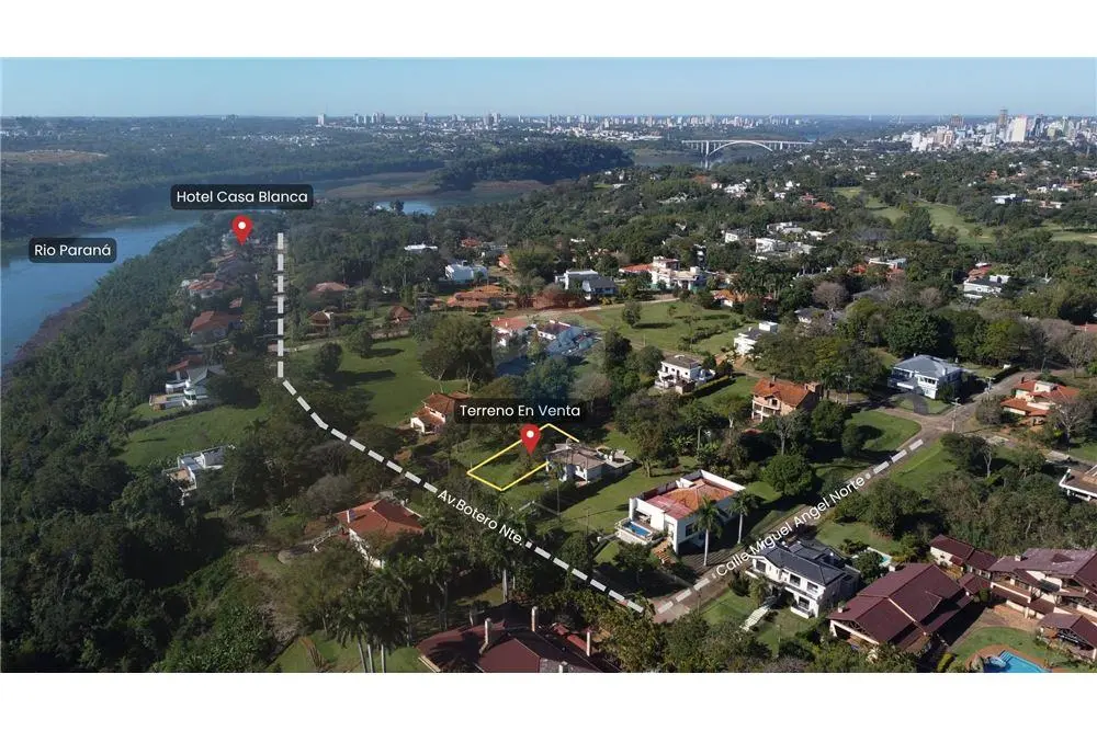A.S.C.M TERRENO EN EL PARANA COUNTRY CLUB Ubicado en zona Residencial sobre la Avda. Botero Nte. Superficie de 1.000 m2, plano con 20 metros sobre calle principal Seguridad 24 horas Acceso al Club de Golf, Áreas recreativas y Cancha deportivas
