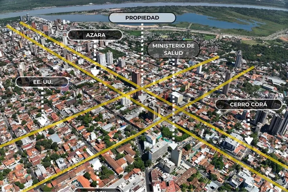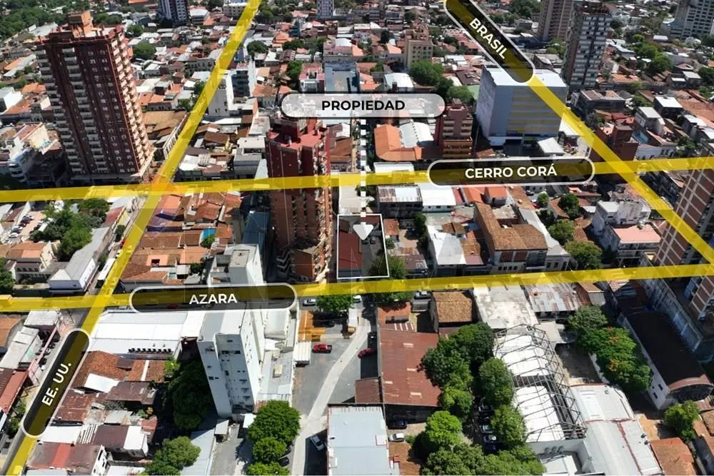 La propiedad cuenta con 14.42 metros de frente sobre la calle Félix de Azara entre Brasil y EEUU, frente al IPN (Instituto Privado del Niño) en el Barrio San Roque de la ciudad de Asunción.