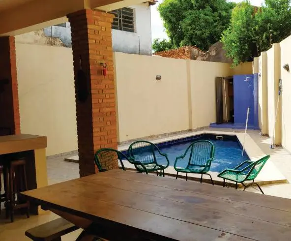 Patio posterior, con Piscina azulejada, sector para ducha y caseta para filtro