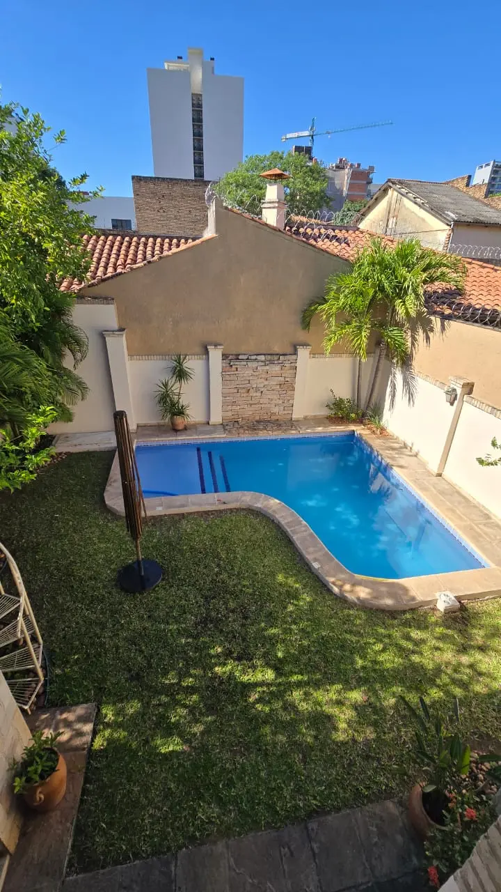 Jardín y piscina