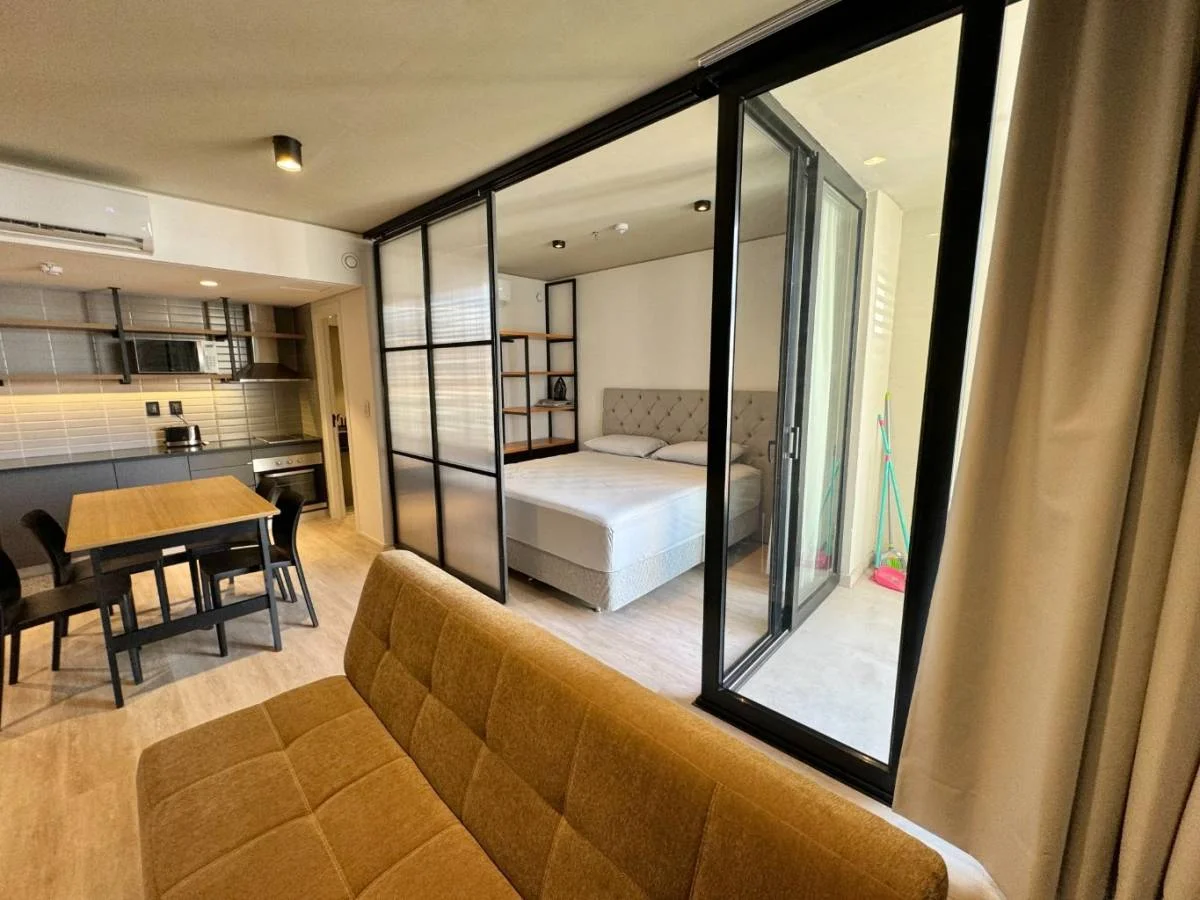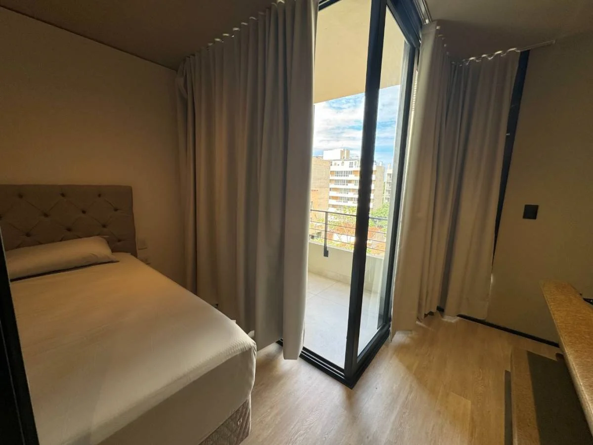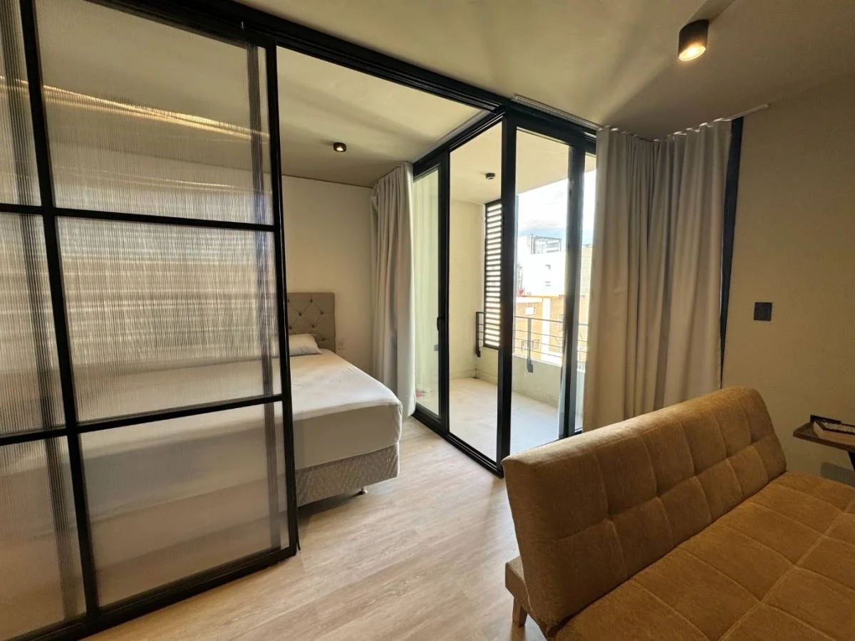 • El área de dormitorio semi integrado, con posibilidad de cerrar con una puerta corrediza.