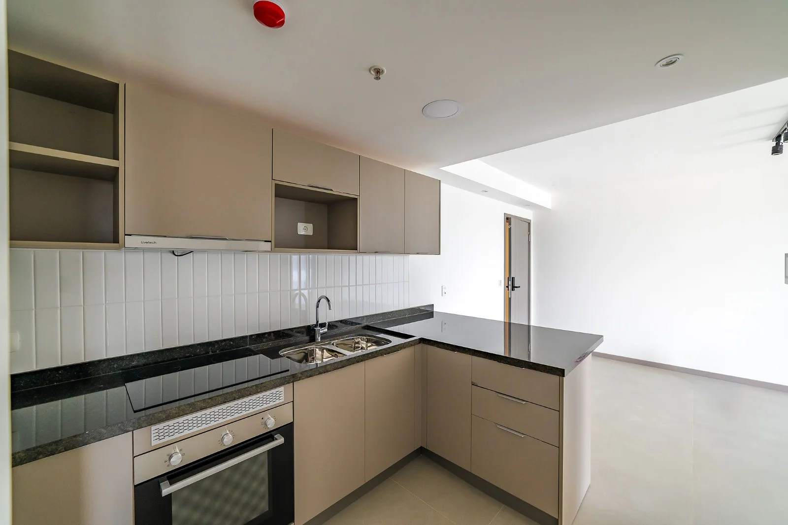 Cocina integrada totalmente equipada con horno, anafe y purificador de olores.