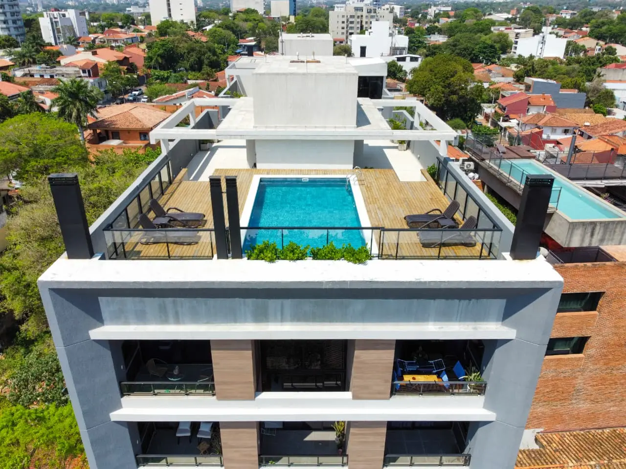 El Edificio Esencia cuenta con amenidades como; piscina, gimnasio y 3 quinchos con parrillas en la terraza.
